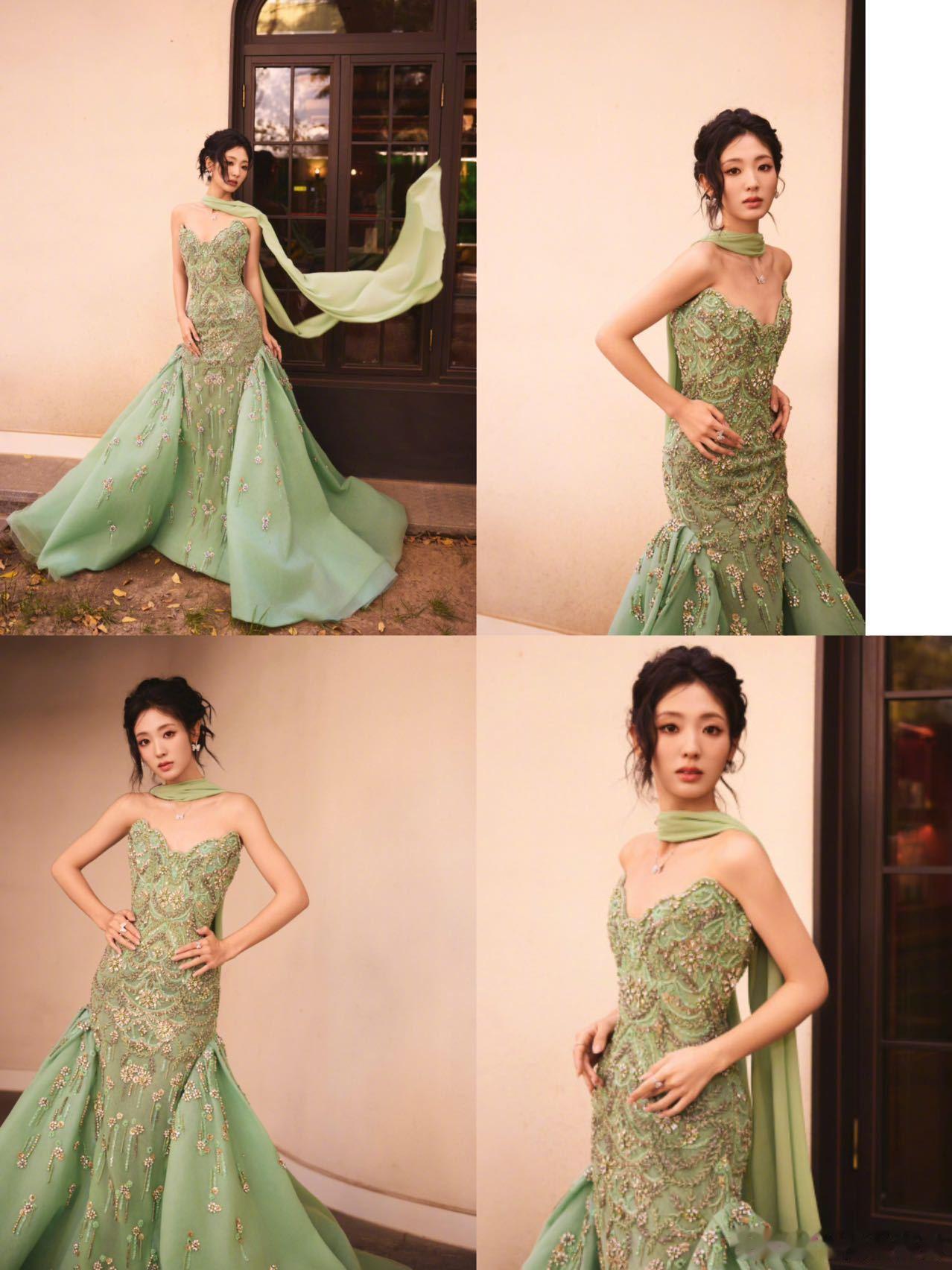 邢菲只需稍微出手 邢菲新造型太可了!黑色深V长裙藏性感,裙摆摇曳有韵味;绿色长裙