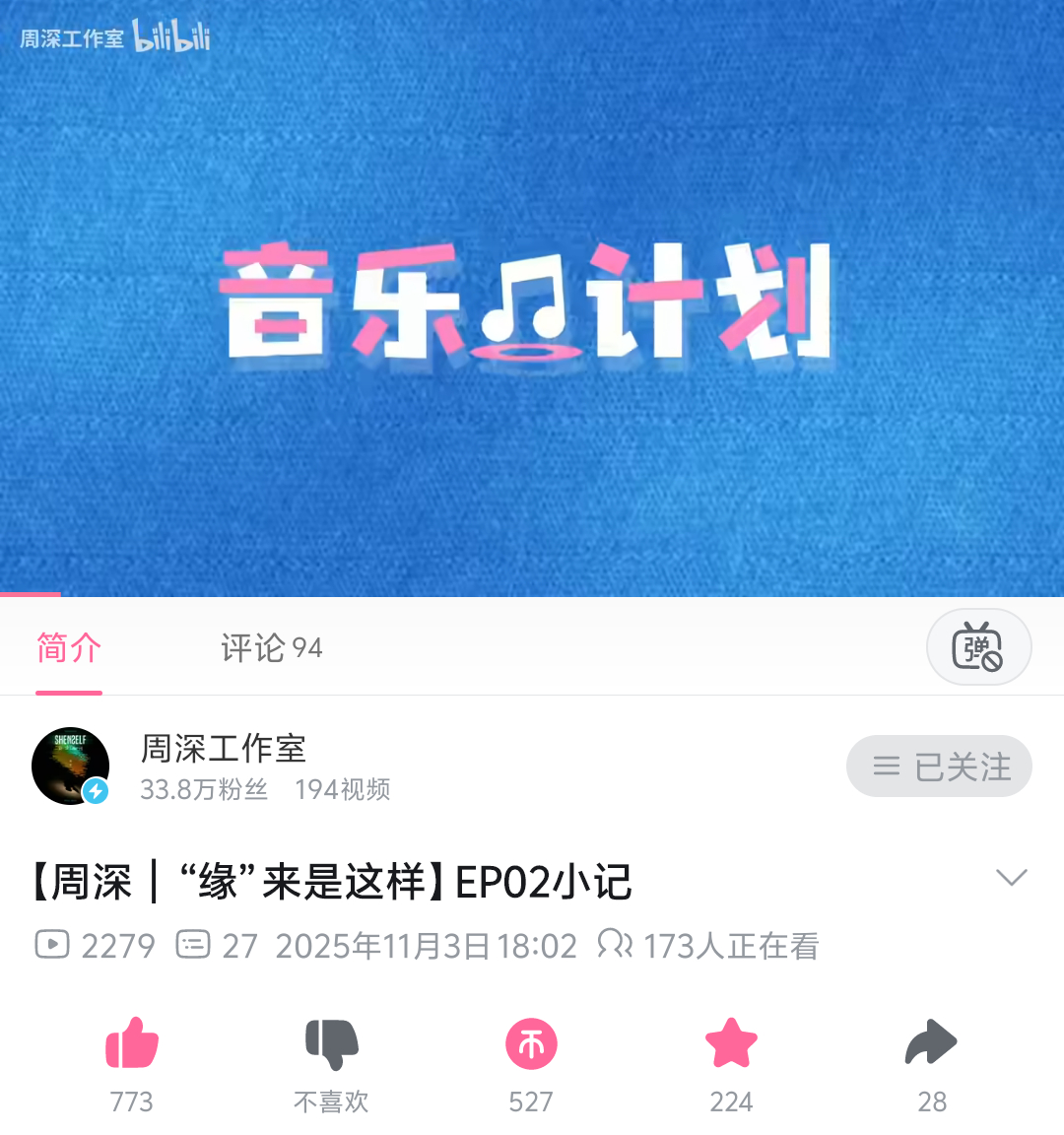 【周深工作室】各平台更新了深深🎵缘计划EP2小记,米子们快来完整观看并多多三连互动安利[拳头]