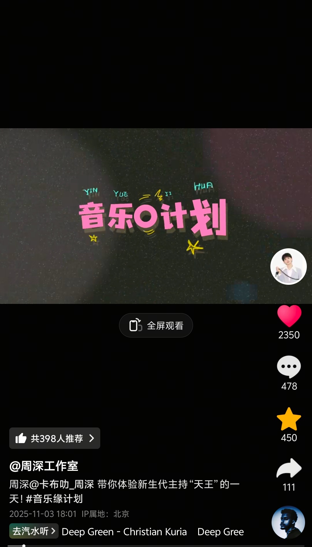 周深[超话] 📣 11.3 柿子 📣【周深工作室】各平台更新了深深🎵