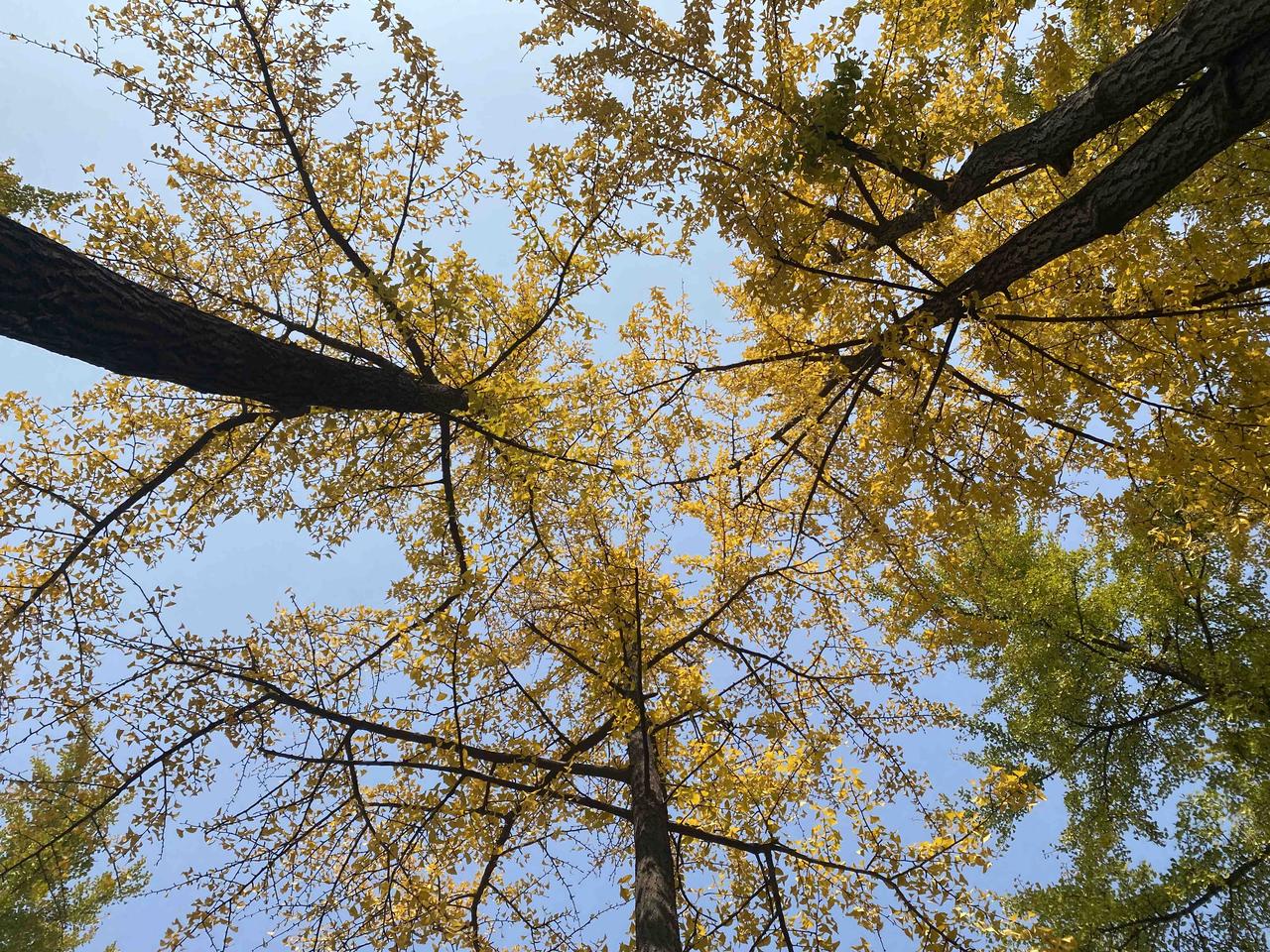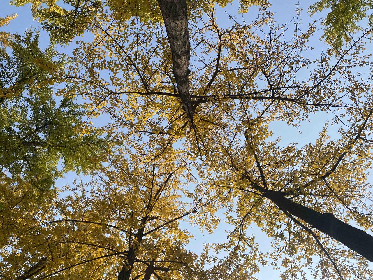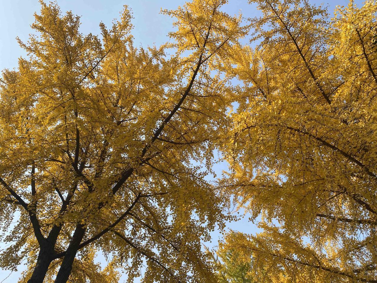 银杏把整个秋天的阳光都织进了叶子里,生机盎然的绿外套,换成了亮闪闪的黄马甲,走在路上像踩进金色海洋,伸手就能接住飘来的“小金币”。像接住了一整个秋天的温柔。, 站在树下抬头望,金黄的叶片缝隙里漏下的光斑,簌簌地落在发梢。赶紧掏出手机拍照,连影子都裹着一层暖黄滤镜,指尖抚过叶脉的纹路,像触到了时光慢慢流淌的痕迹。