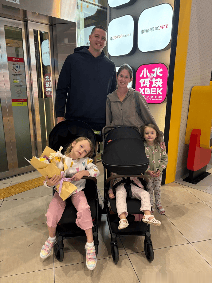 配文:詹姆斯一家五口顺利抵达!欢迎詹姆斯归来,一起开启新赛季征程!