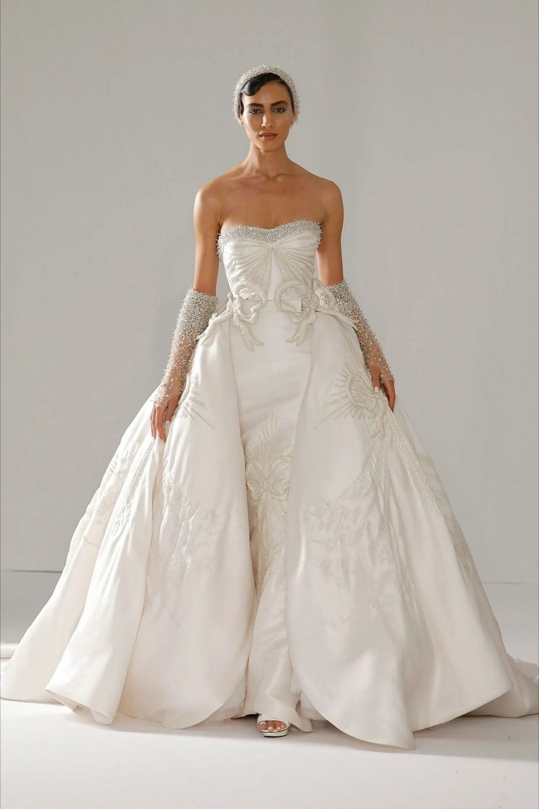 一袭纯白高定抹胸亮相,清冷又灵动的气质扑面而来,白鹿的颜值总能在简约中绽放极致惊艳。