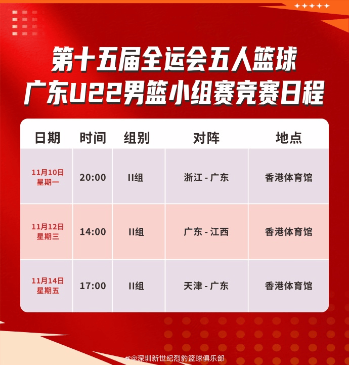 虎扑11月03日讯深圳男篮分享全运会赛程:周鹏、贺希宁将身披广东队战袍。