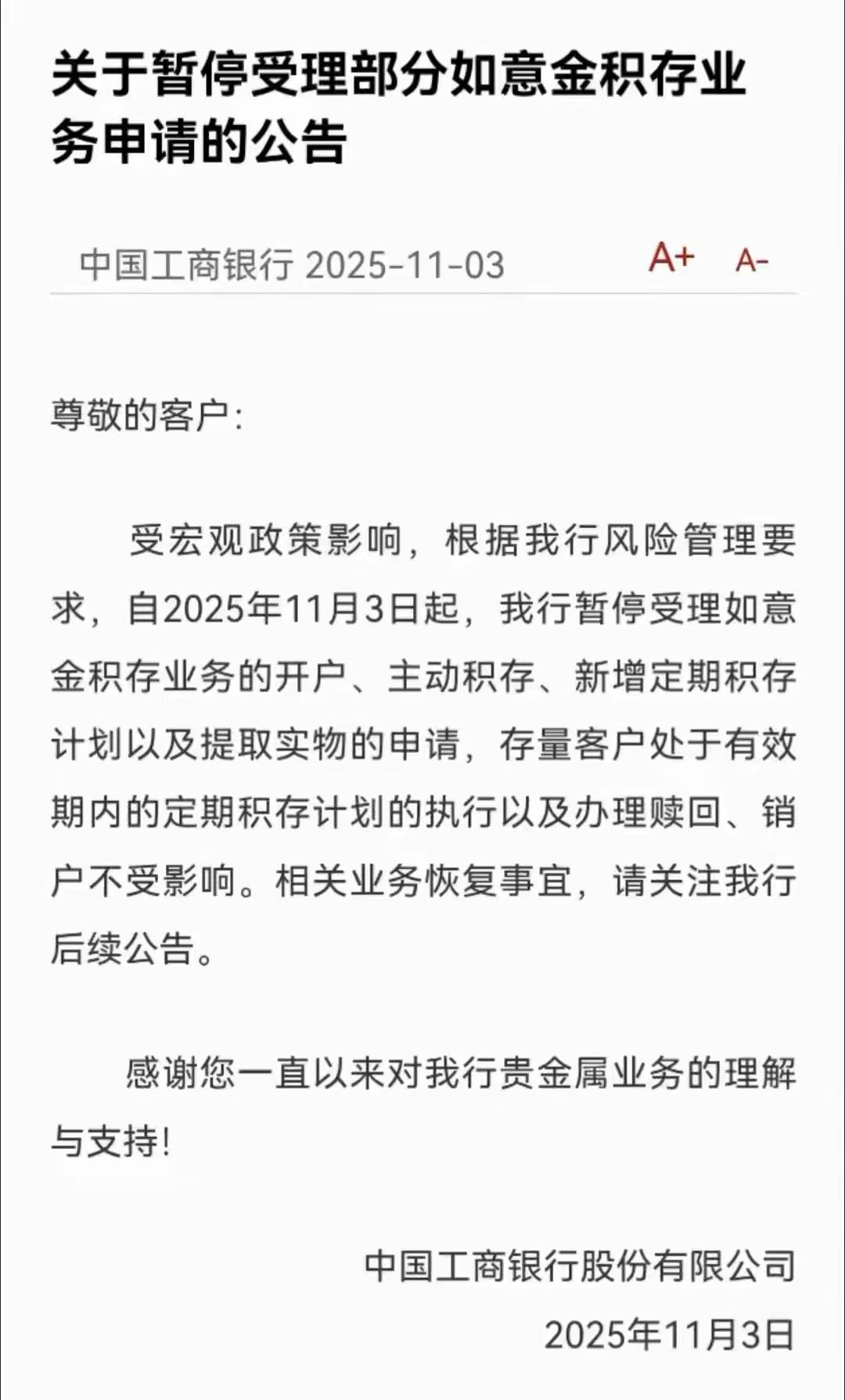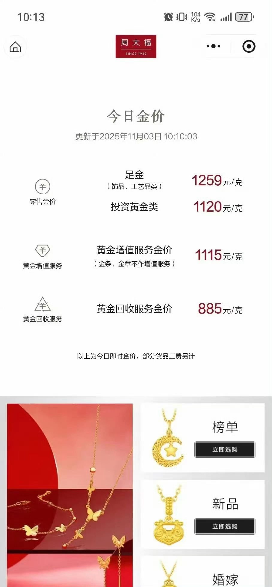 11月1日的黄金税收新规出台后,工行建行今天暂停了实体金提取,招行金条价格以含税,水贝市场、周大福等零售商大涨价。