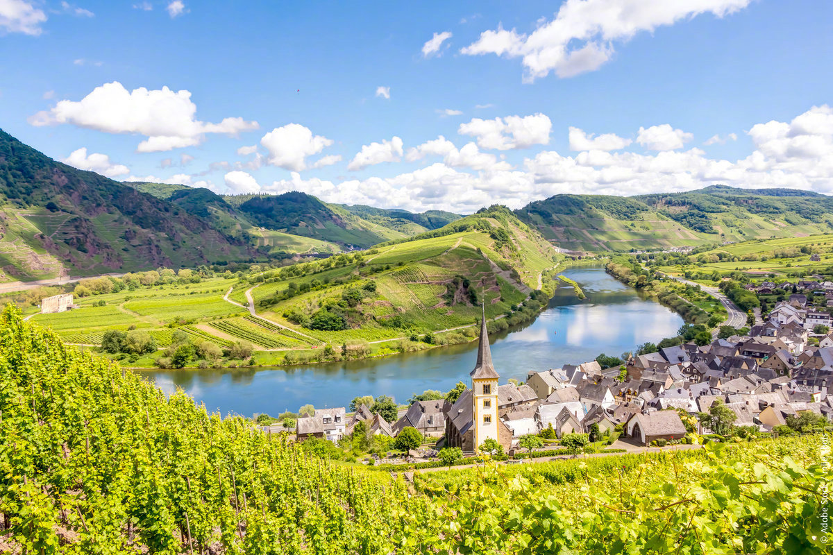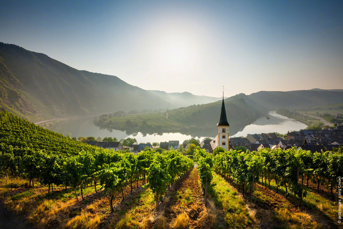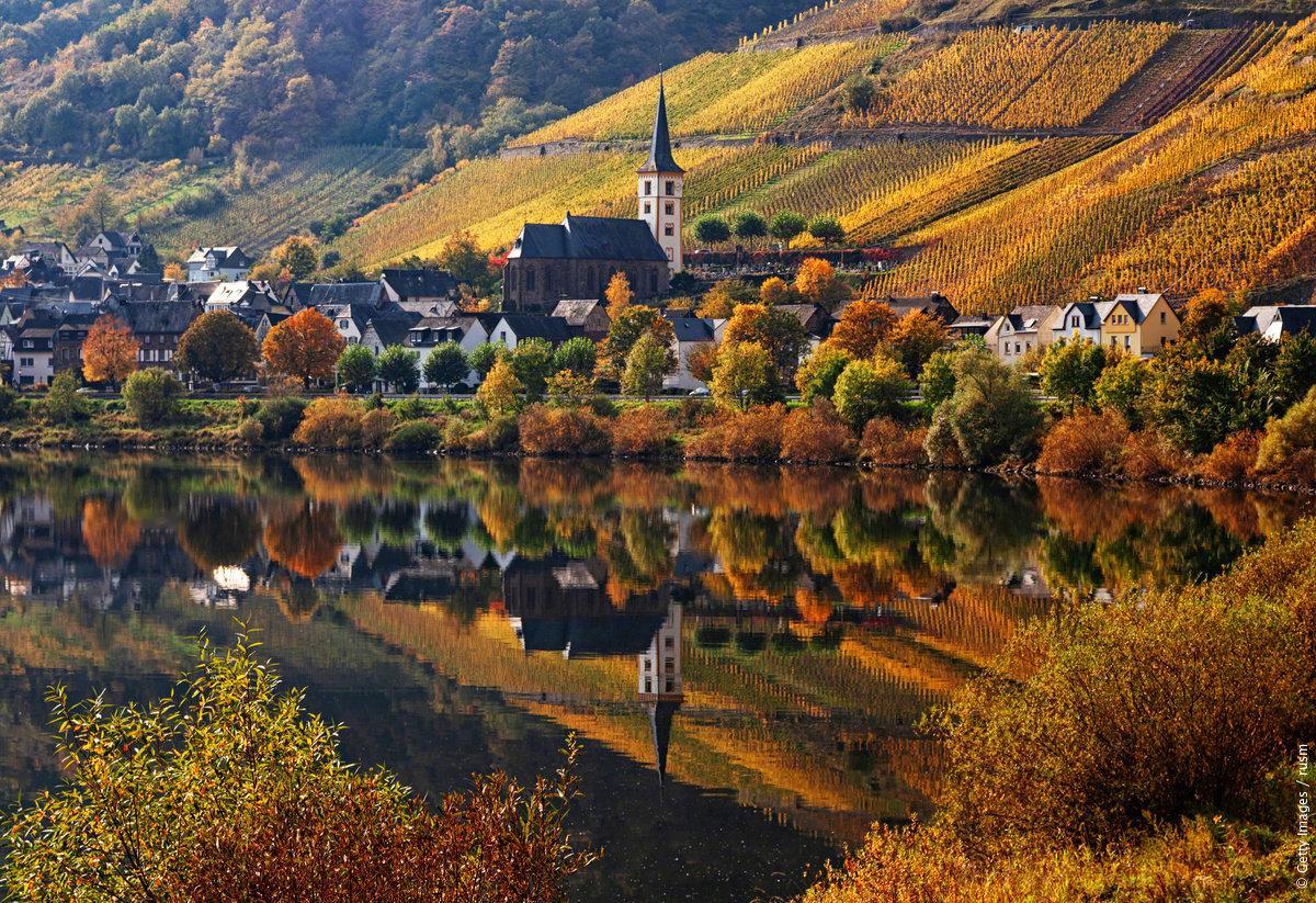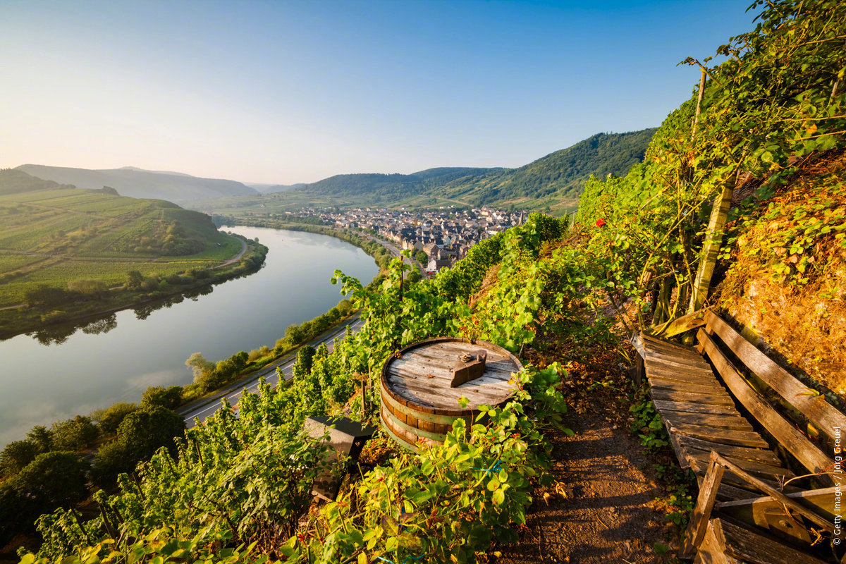 【这里是德国】布雷默(Bremm)是摩泽尔河最陡峭的葡萄园所在地,Calmont葡萄园的坡度达65度,堪称欧洲之最。每年秋天,葡萄农们系着安全绳在几乎垂直的梯田上劳作的身影,成为小镇最动人的风景。