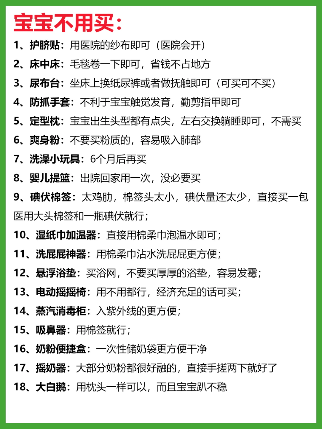 娃真的不是吞金兽,我们被资本市场教育的太深了 尤其是新手妈妈,有囤货焦虑,啥都感觉要买,其实很多东西都没必要买,或者可以平替 以上分享了妈妈和宝宝不需要买以及需要买的清单,并且写了原因,准备待产包的姐妹可以参考下 当然,每个家庭的的经济条件不一样,各位姐妹量力而行