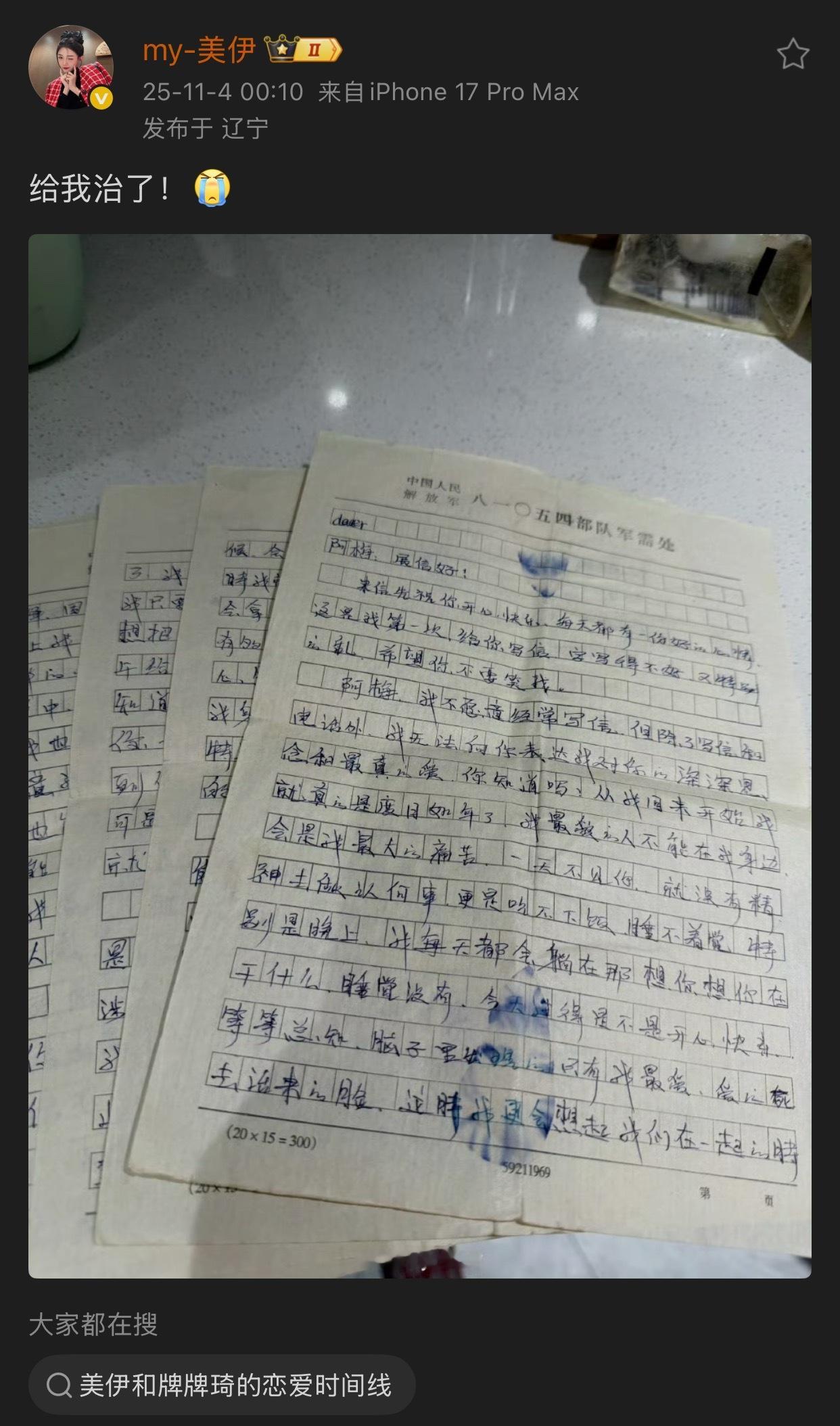 小伊伊父亲写给母亲的信,老一辈的感情真是专一质朴又真诚。[捂嘴哭]