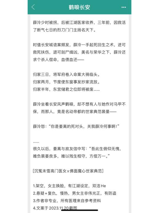 *古言/权谋/江湖/情有独钟/天作之合/甜文/悬疑推理/爽文