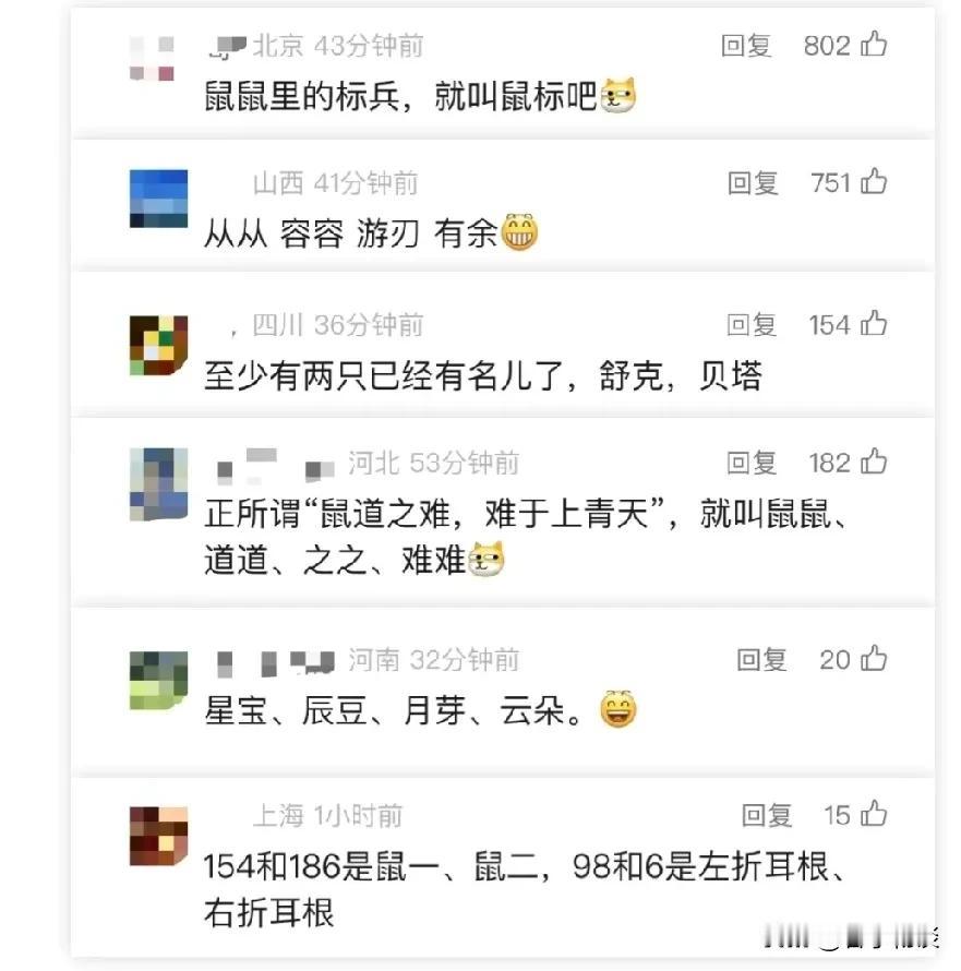 太空鼠天团出道!网友取名太有才了吧 热心网友也太会玩了!四只太空实验鼠还没取名字,幽默的网友直接搬出最近火得一塌糊涂的神曲《没出息》来取名:从从、容容、游刃、有余,这也绝了,太空鼠表示:我要有出息啊! 更绝的是有才网友连职业生涯都规划好了:从从负责啃电缆测试设备,容容专攻失重瑜伽表演,游刃当太空清洁工,有余嘛...当然要给地面团队“留有余地”!有意思吧!