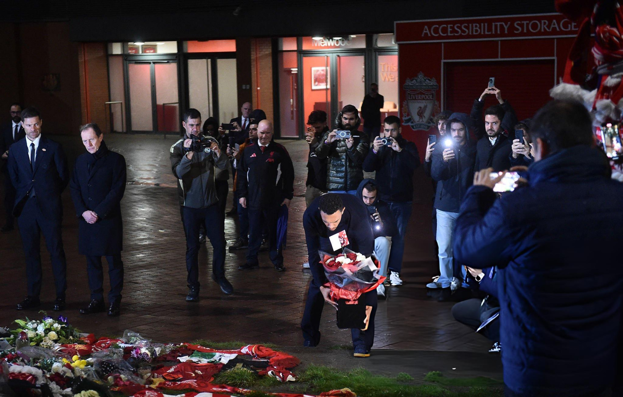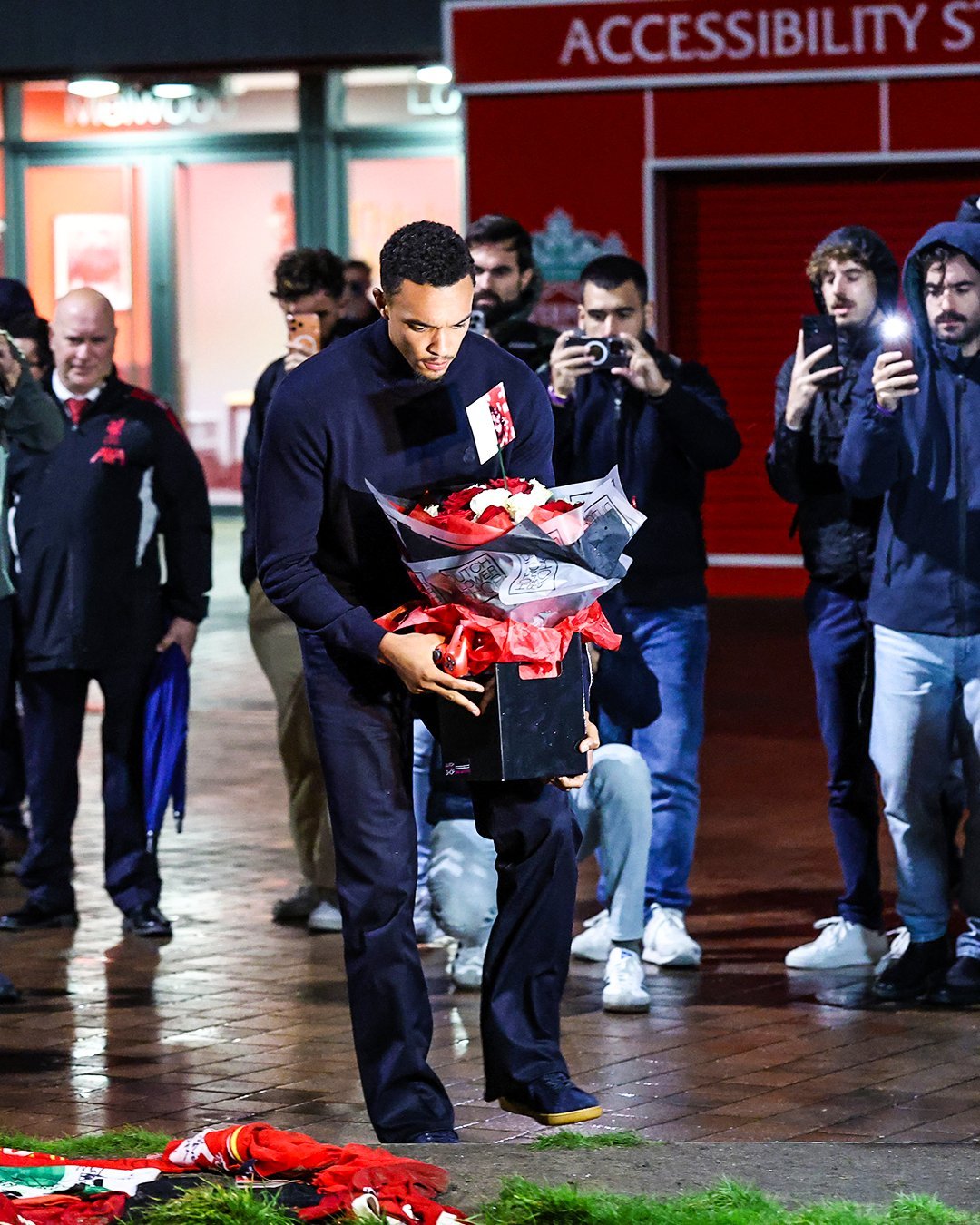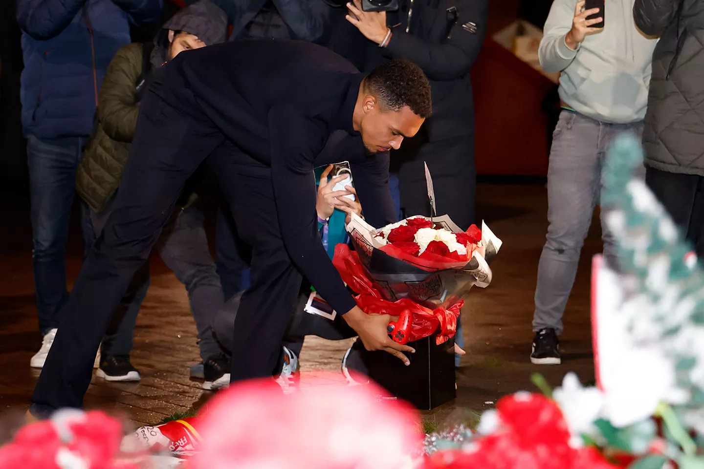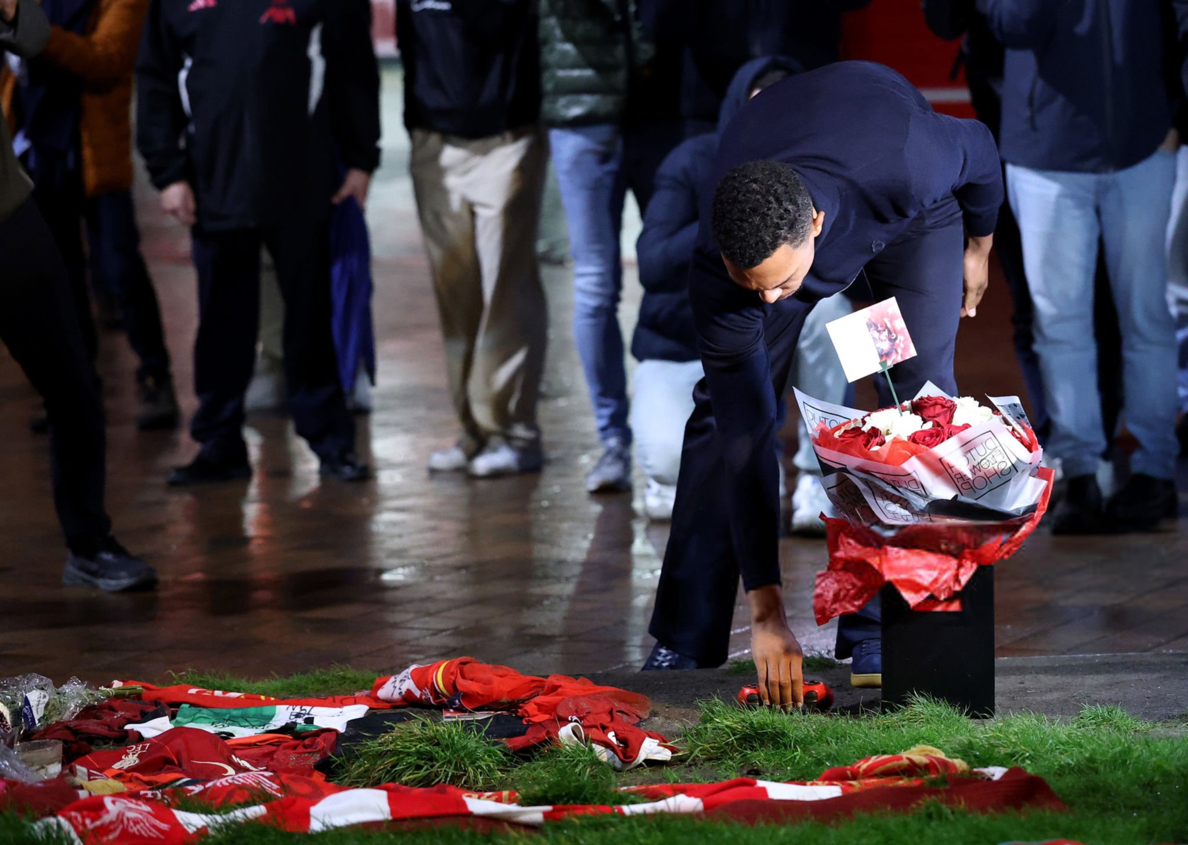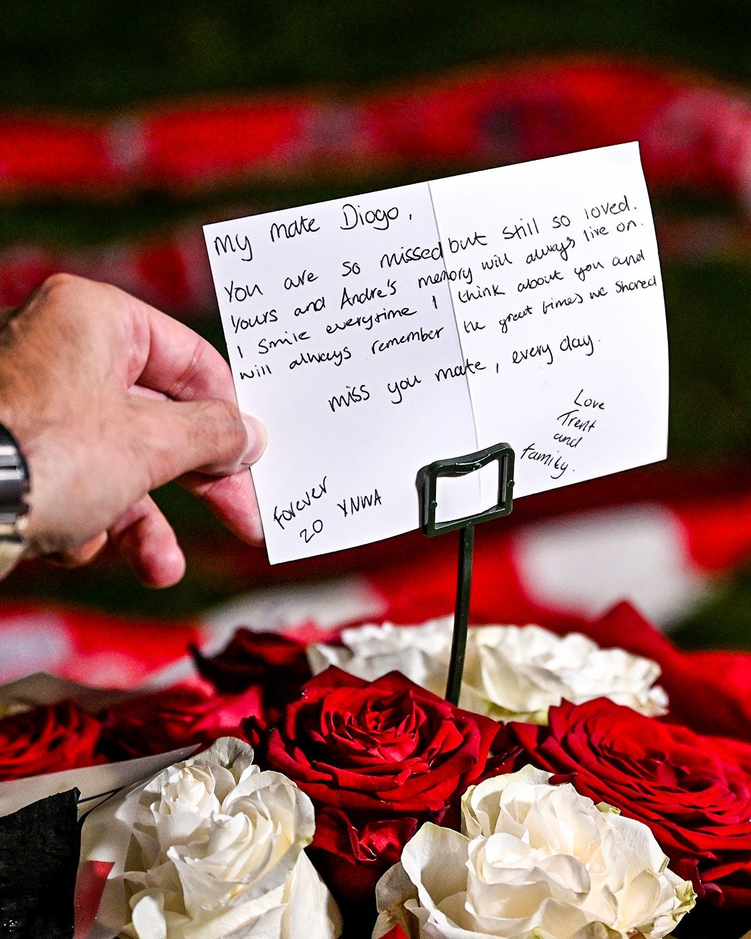 特伦特在若塔纪念碑前留下了一个红色游戏手柄、一封信和花圈。🎮❤️欧冠联赛利物浦