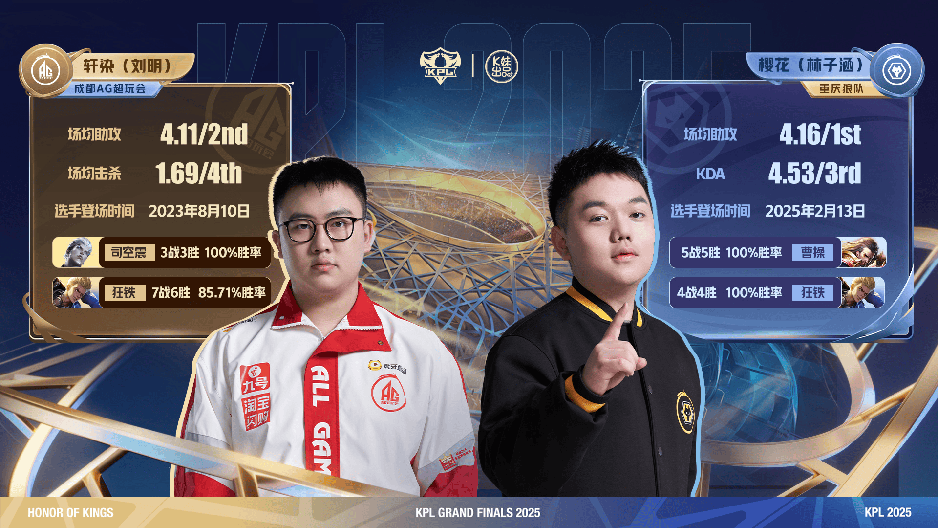 樱花(林子涵)在2025年2月13日初次登上赛场;本次年度总决赛期间场均助攻4.16,同位置排名第一、KDA4.53,同位置排名第三;曹操5战5胜,100%胜率;狂铁4战4胜,100%胜率。