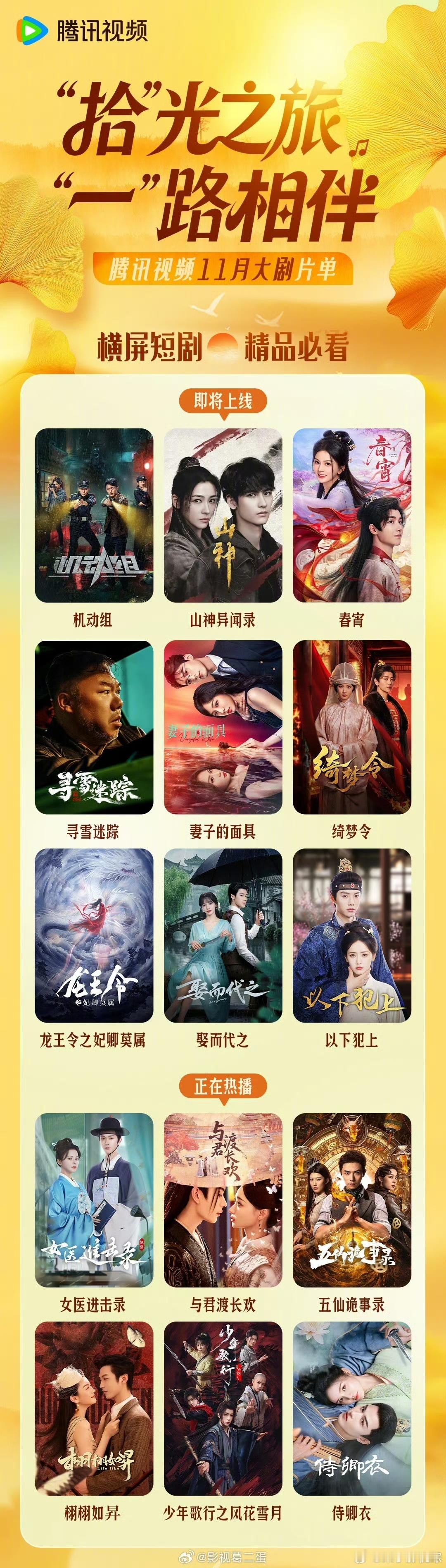 腾讯视频发布11月大剧片单🈶你期待哪一部