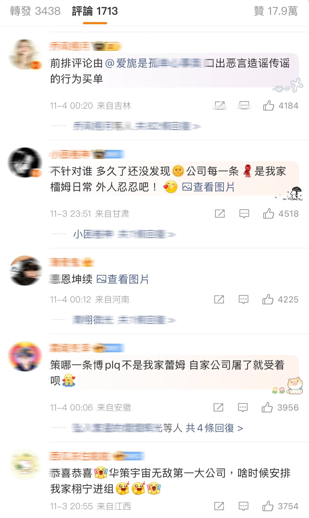 华策影视发布了杨紫李现的国色芳华获奖博,结果被田栩宁粉丝全部图了。他们是让华策给