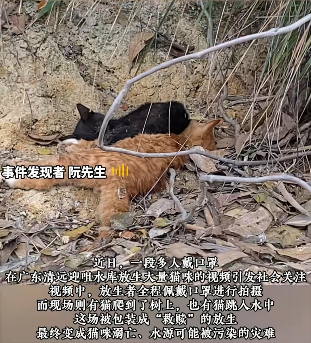 清远放生猫事件!部分未救助的放生猫已出现死亡,其中有猫已经死在了水库里面! 根据知情者介绍,约1024只足足两大卡车,这里方圆十几公里都是没有人烟的,很多放生猫已经出现应激反应,甚至出现了猫咪死亡的情况。 现场还有部分未完全救助的猫咪,因为猫实在是太分散了,社会救助力量的行动又比较有限。 这些打着救赎的名义来放生的人给当地带来了一次生态灾难,也为这批猫带来了灭顶之灾。 各位是怎么看的?欢迎评论区留言。