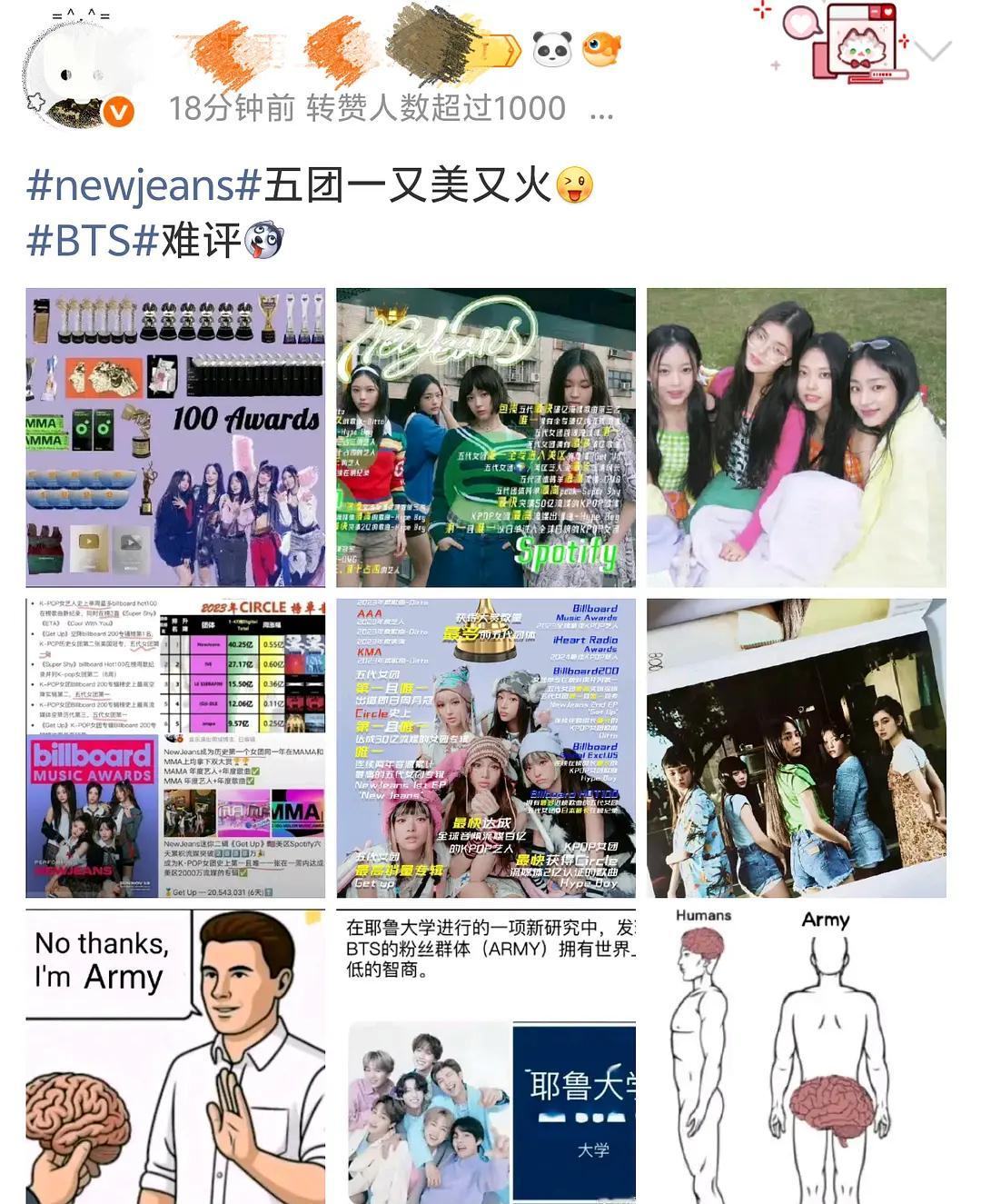 没人觉得 newjeans 粉丝对着世团一bts 喊五团一很幽默吗?