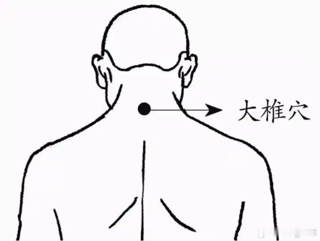 【位置】正坐低头,用手摸颈后高骨(第七颈椎)的凹陷处就是大椎穴。