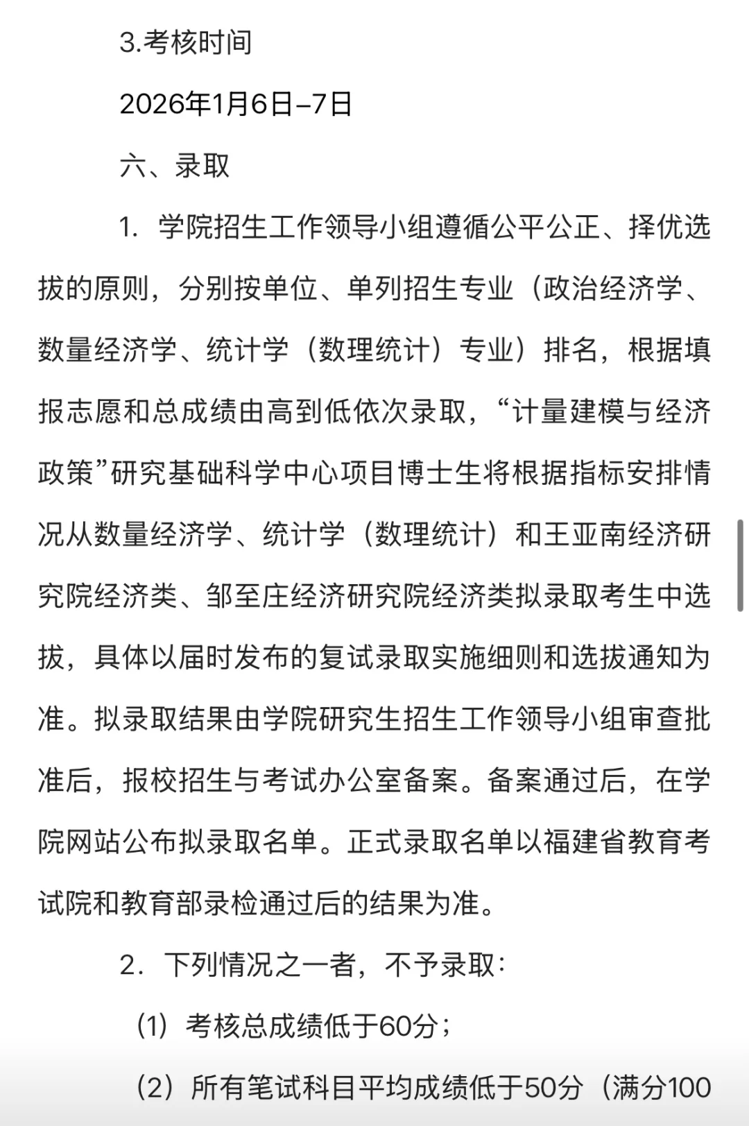厦门大学经济学科2026年博士研究生第二批次“申请-考核”选拔办法
