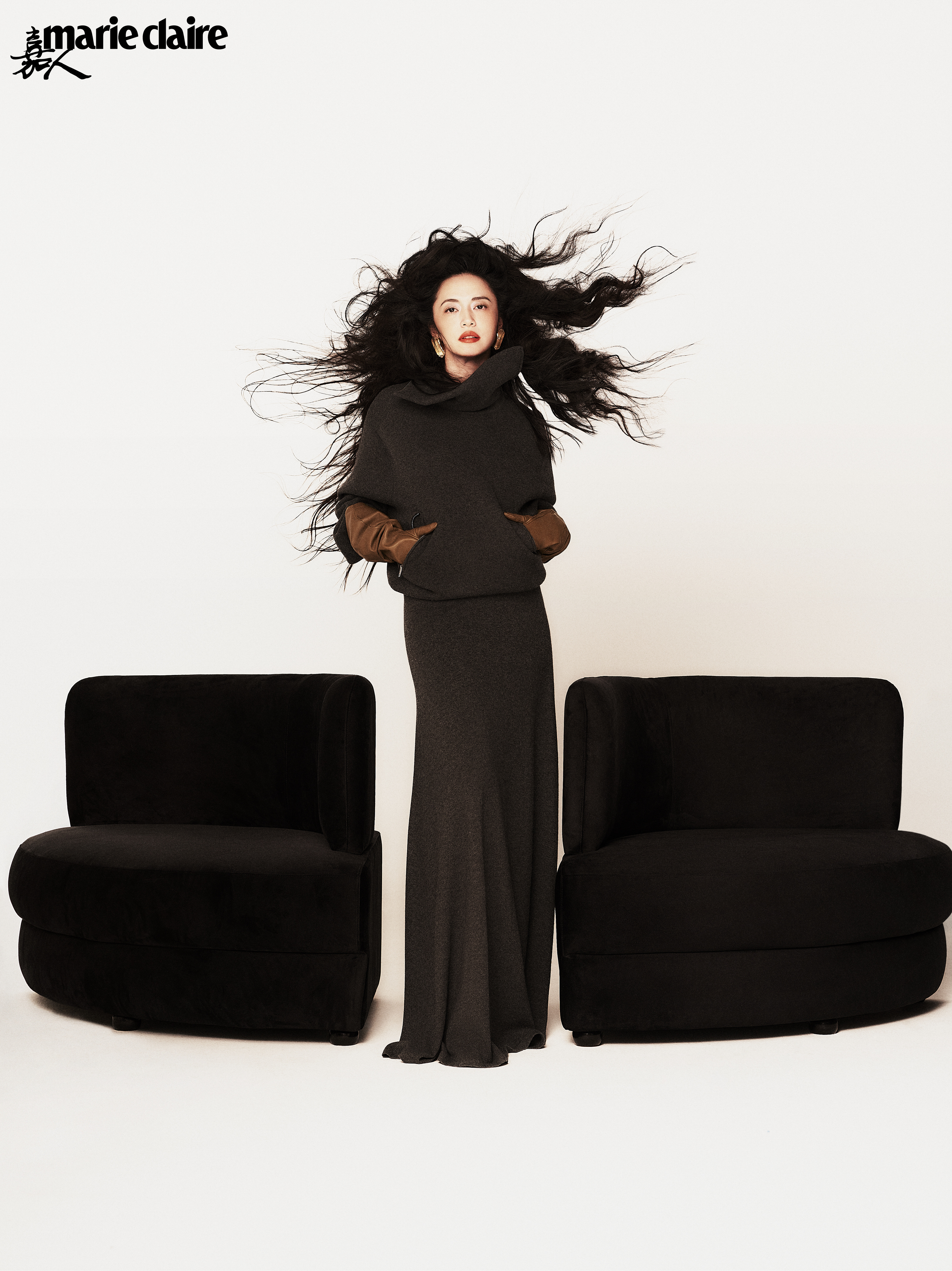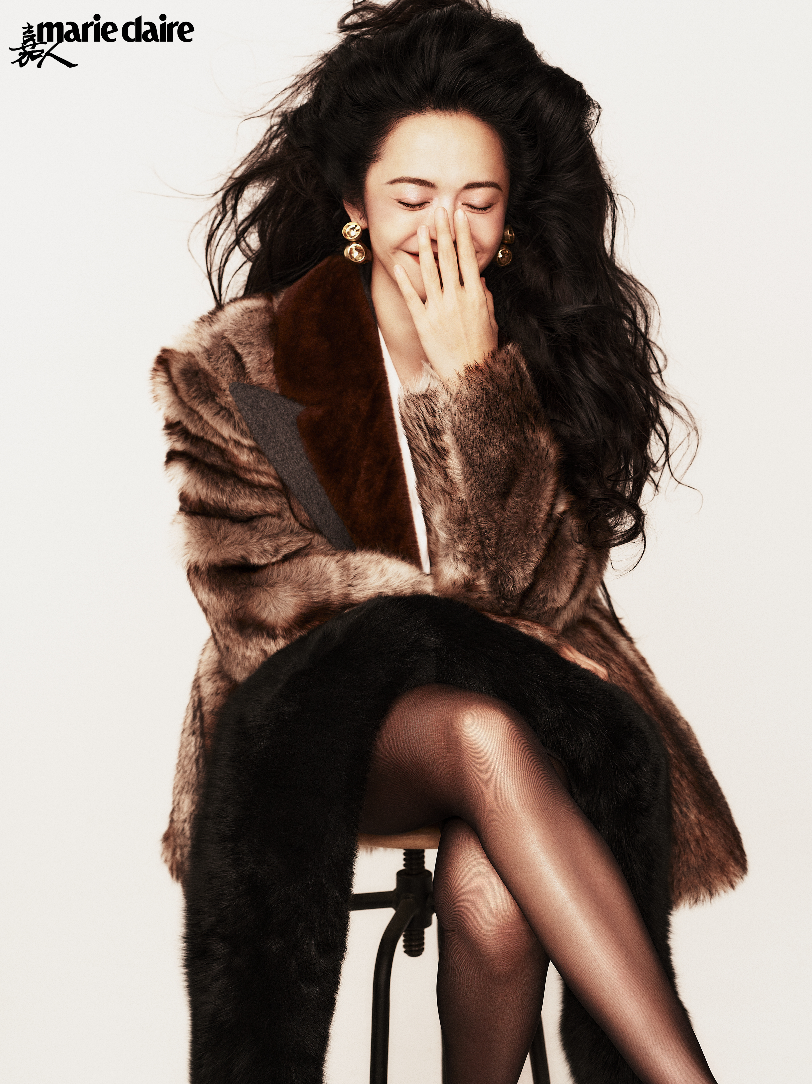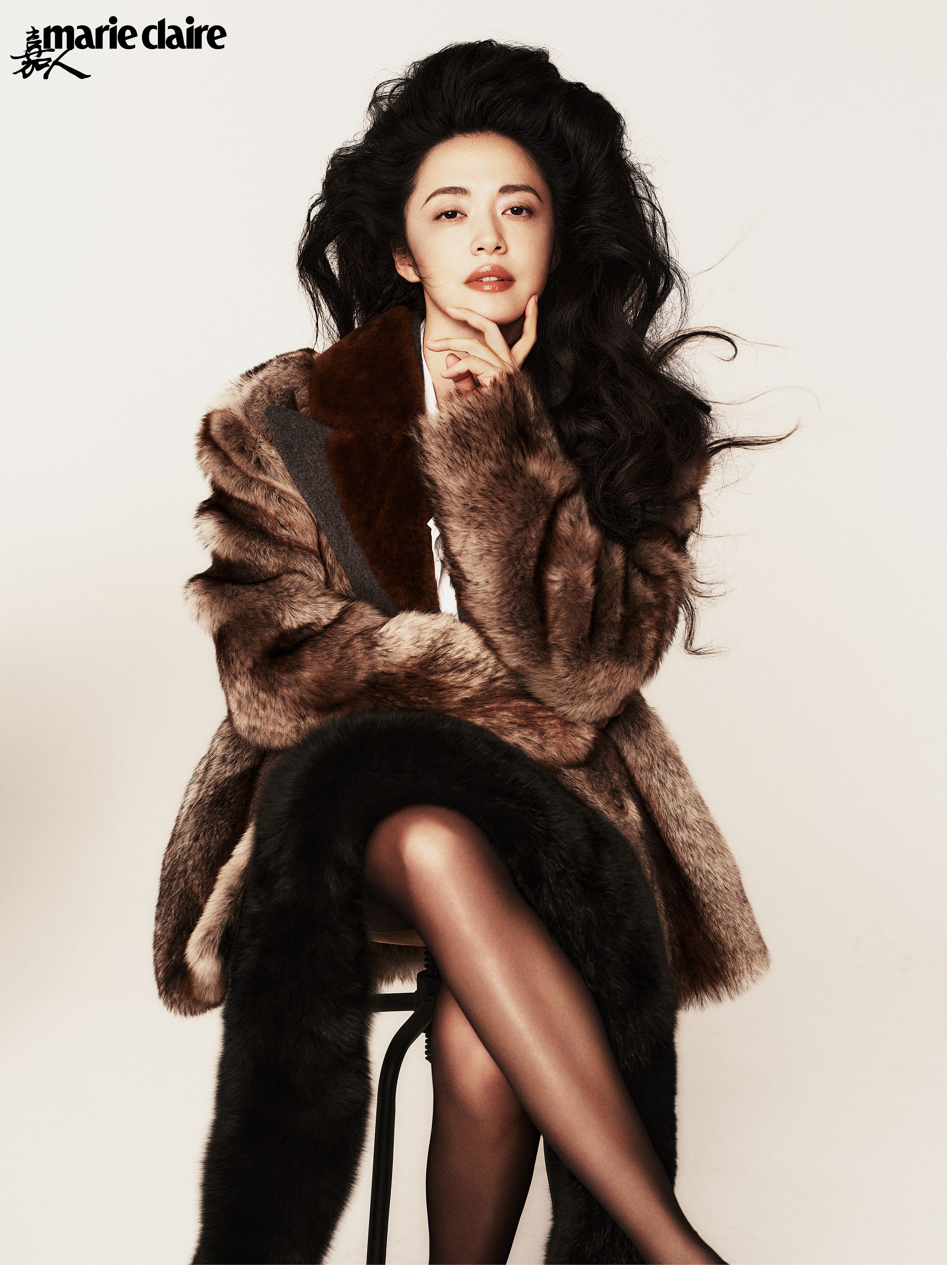 姚晨 经济上行的美 复古夹克的廓形、存在感满分的大耳环,还有那件质感绝佳的皮草,