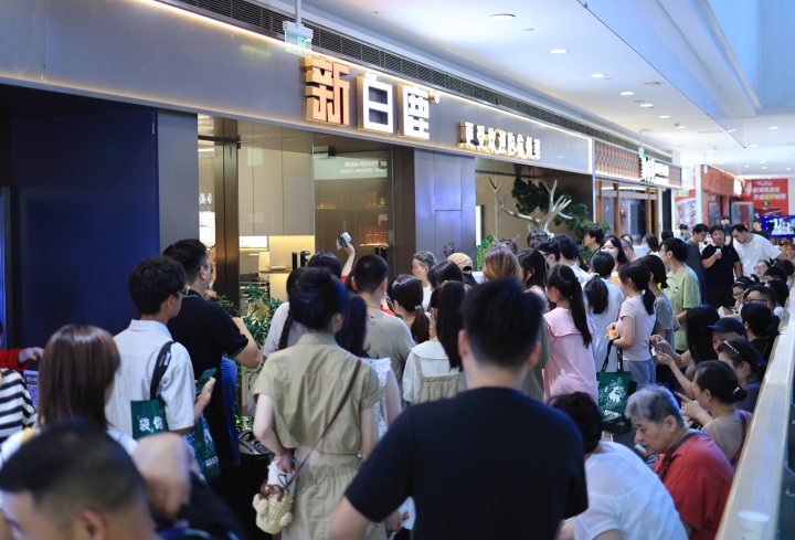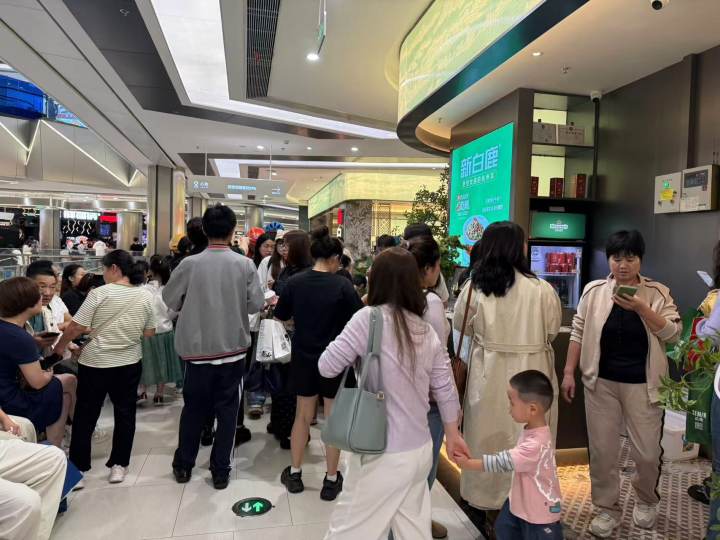 最火爆的杭州和上海门店,有不少顾客坐两小时地铁赶来品尝。还有的顾客,在商场开门之前,就从员工通道进来,在新白鹿门口排队;而新白鹿的火爆,也势必延迟了下班时间,商场也积极沟通,加派了安保。