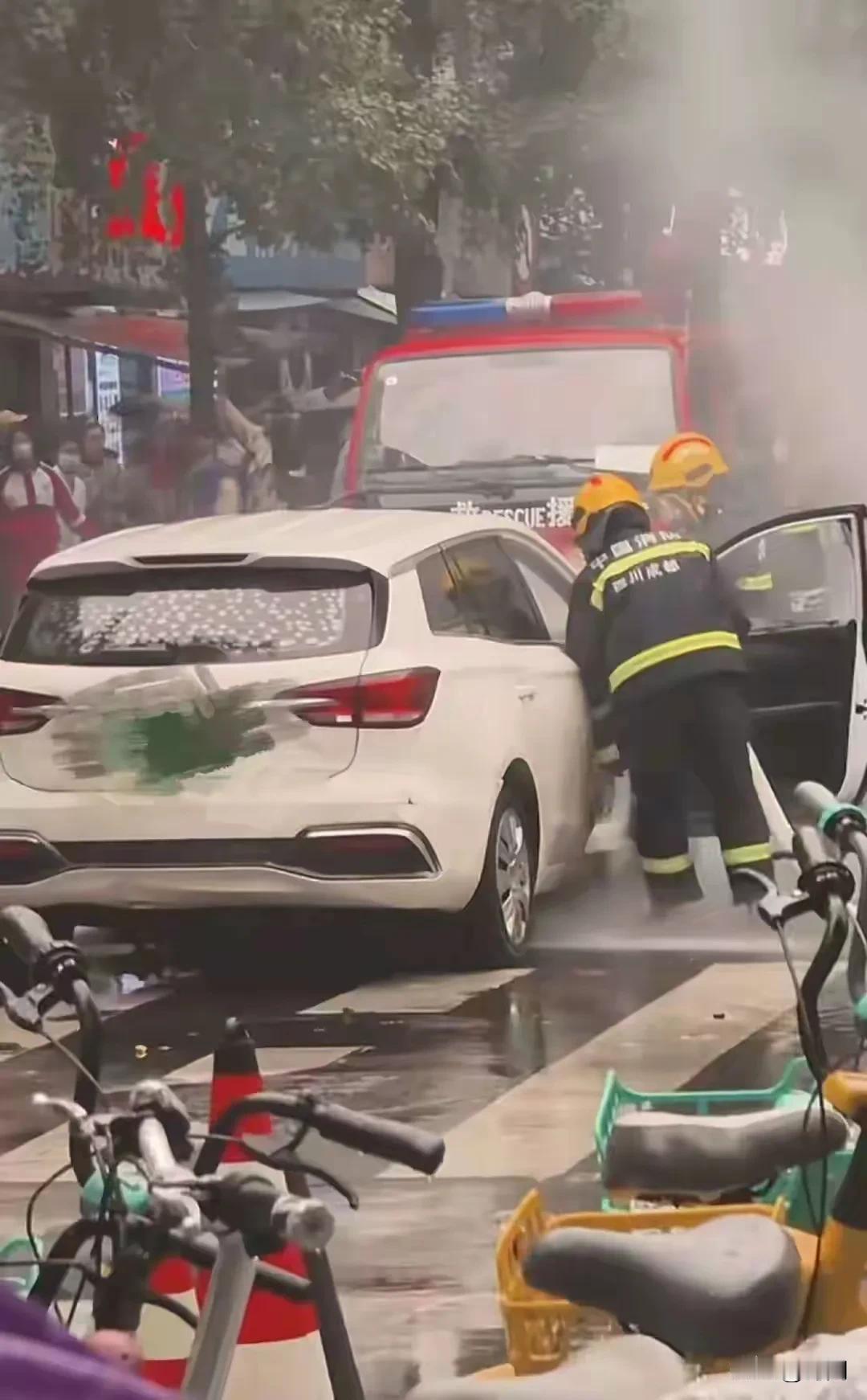 十分危险,成都市区一辆新能源汽车行驶中突然底盘冒烟起火,瞬间吞噬全车。事发11月4日,在成都市青羊区少城街道某小区出入口附近,一辆白色新能源汽车已经喷出火焰。 据事发群众说,当时这辆车正常行驶到此处,突然底部一股白烟冒出,司机赶紧下车让车上人员离开。不到1分钟,底盘下面就喷射火焰,10米外都感到炽热火浪,附近群众都用自己的灭火器和水管灭火。 消防人员赶来后,进行了灭火降温,大火被扑灭,所幸事故没有人员伤亡,但是车辆几乎已经报废。目前现场已经清理一下,事故原因还在调查中,消防人员提醒,驾车时遇到车辆异常情况,请立即离开车辆并报警。 自燃新能源汽车 成都青羊区一新能源汽车突然行驶中起火 成都市青羊区少城街道电车突然自燃