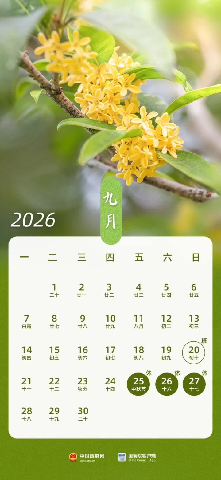 国务院办公厅关于2026年部分节假日安排的通知,全文如下:
