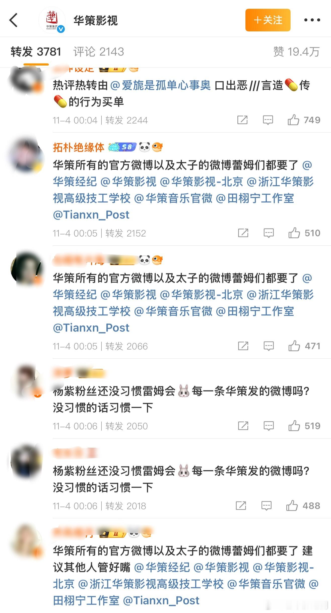 什么情况?田栩宁粉丝屠了经纪公司华策官博评论区,还艾特杨紫粉丝出来回应。