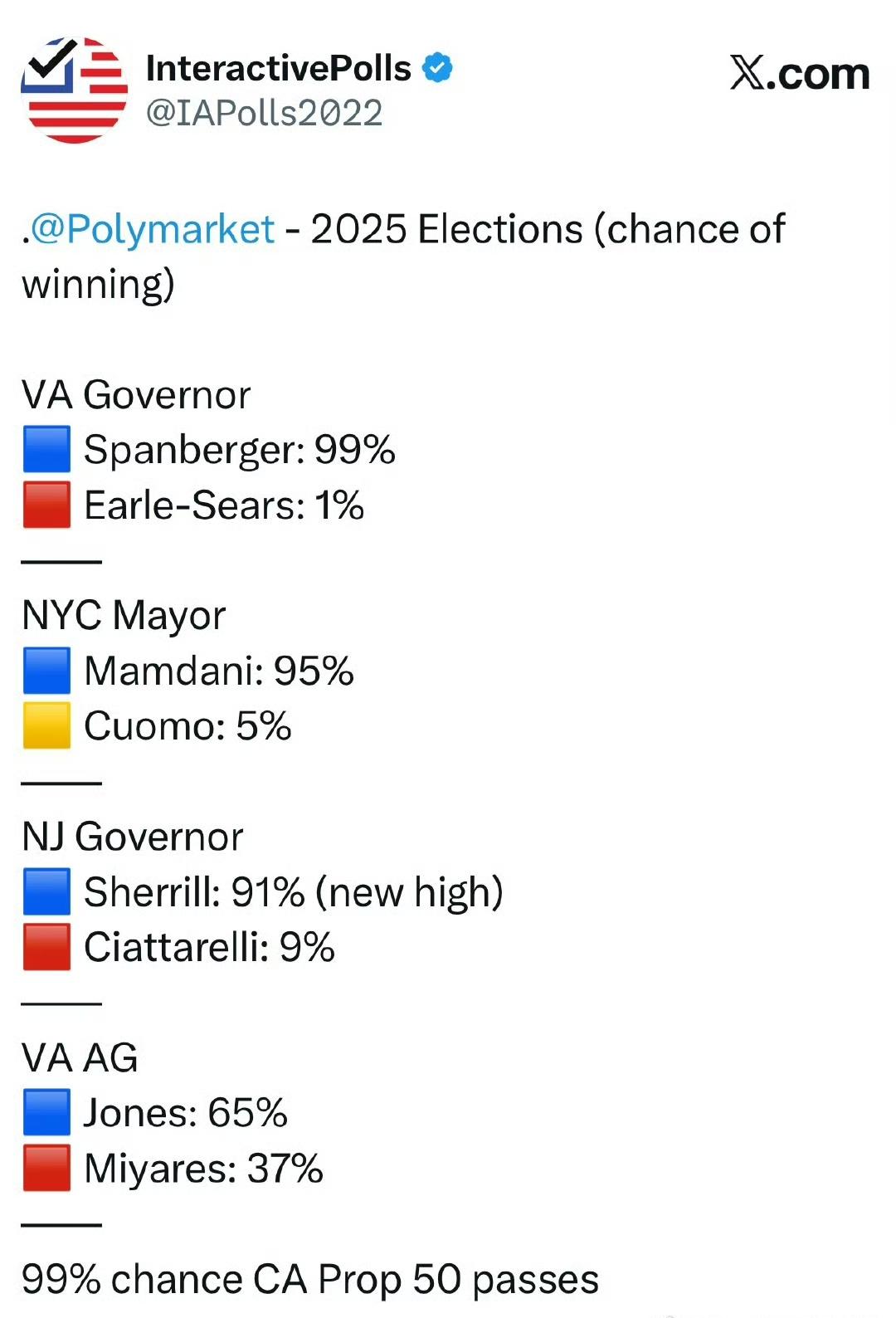 据最新预测消息,民主党有可能横扫新泽西和纽约弗吉尼亚的选举! 新泽西州选举日投