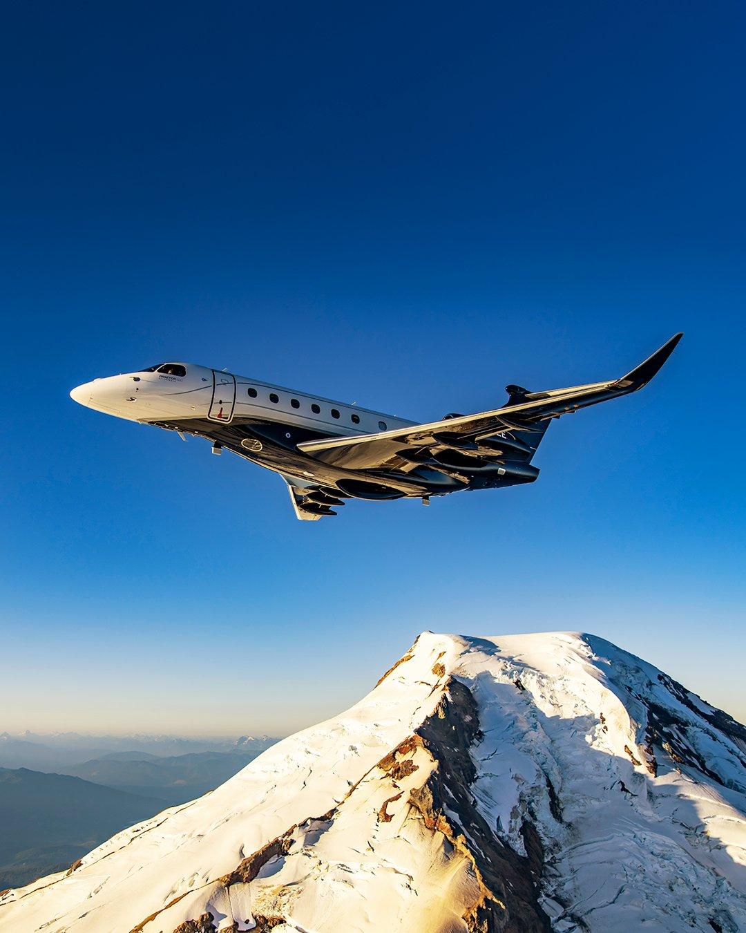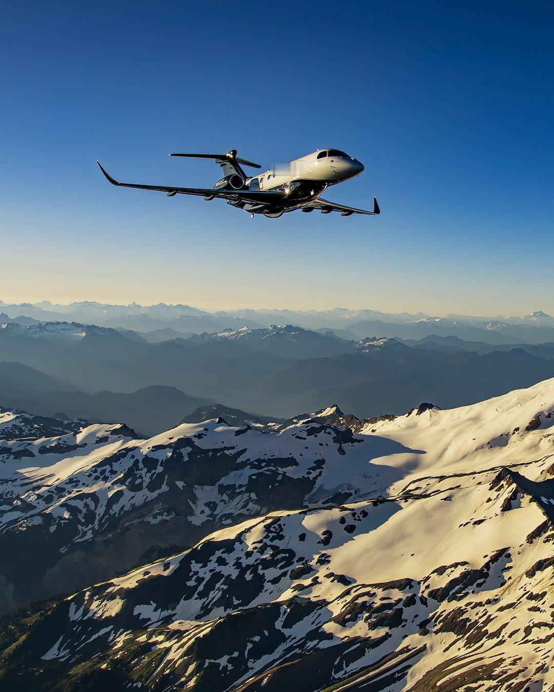 公务机穿梭雪山之巅,银翼与冰雪相映,定格天地间的壮阔瞬间。