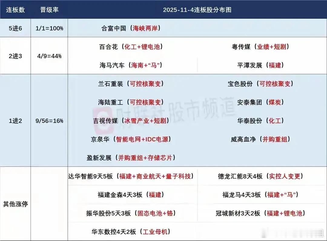 大盘弱势下资金转向抱团,昨日短线情绪修复显著,强势方向核心个股多晋级。合富强势晋级6板带动情绪,时空断板后无负反馈,高标接力热情高涨。今日合富表现至关重要,直接一字板恐有天地杀风险,高开5个点左右且盘中承接上板更具参与价值;平潭虽非最高标,但曾突破异动与监管限制,竞价表现是核心指标,且与合富相互影响,二者有一强则另一者符合预期便有望跟随。