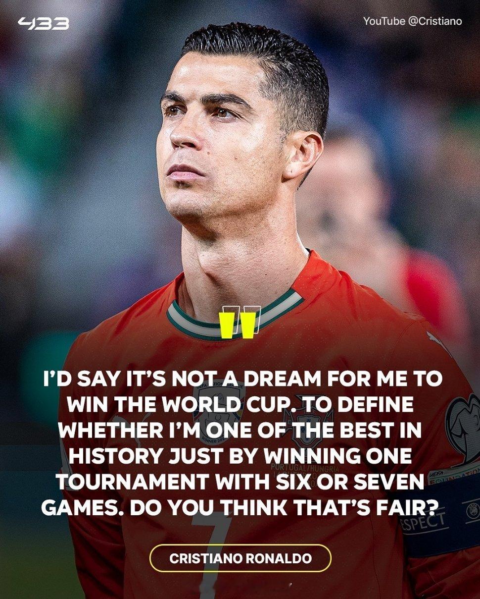 C罗:如果你问我“赢得世界杯是你的梦想吗?”,不,这不是我的梦想。