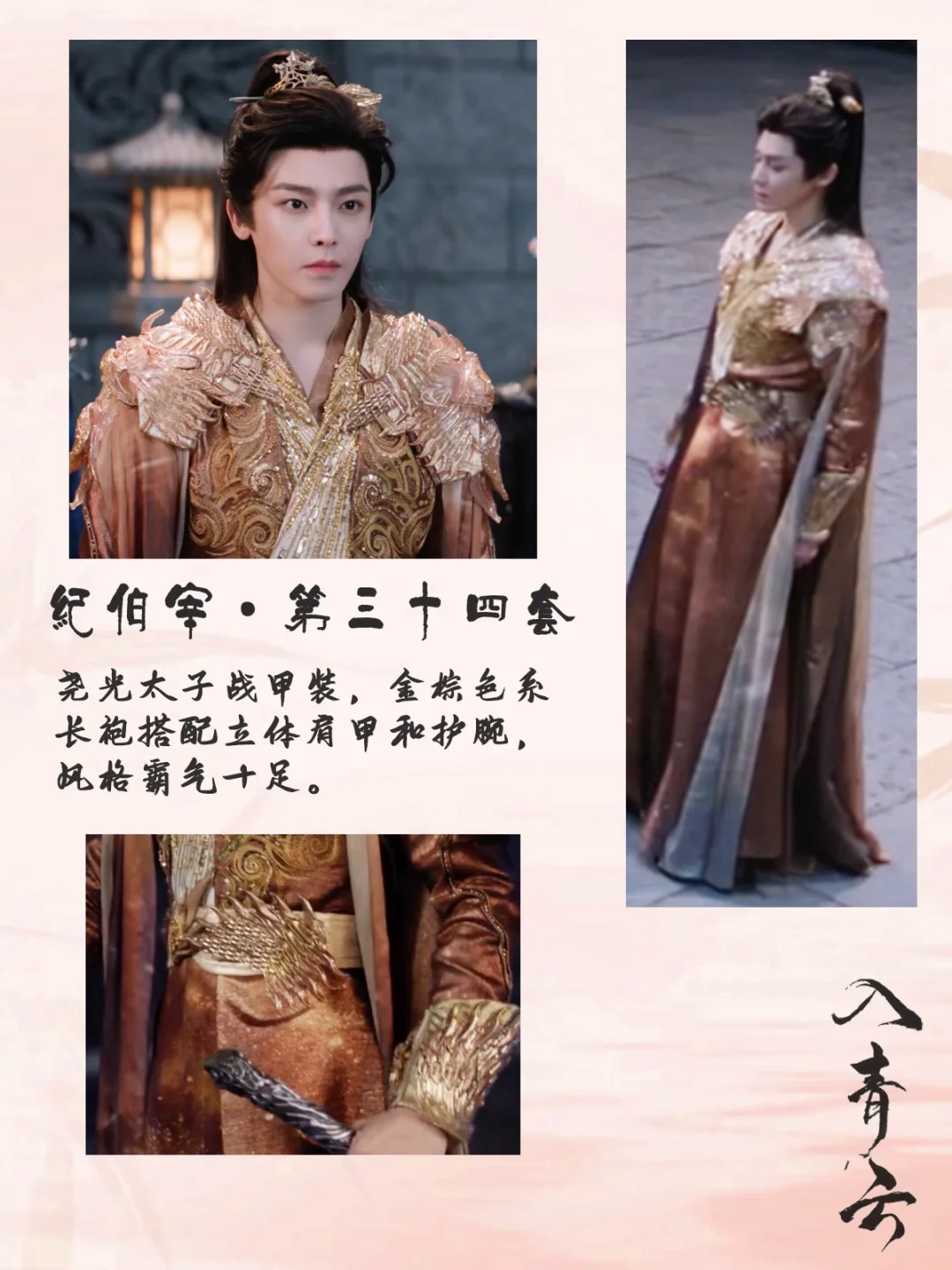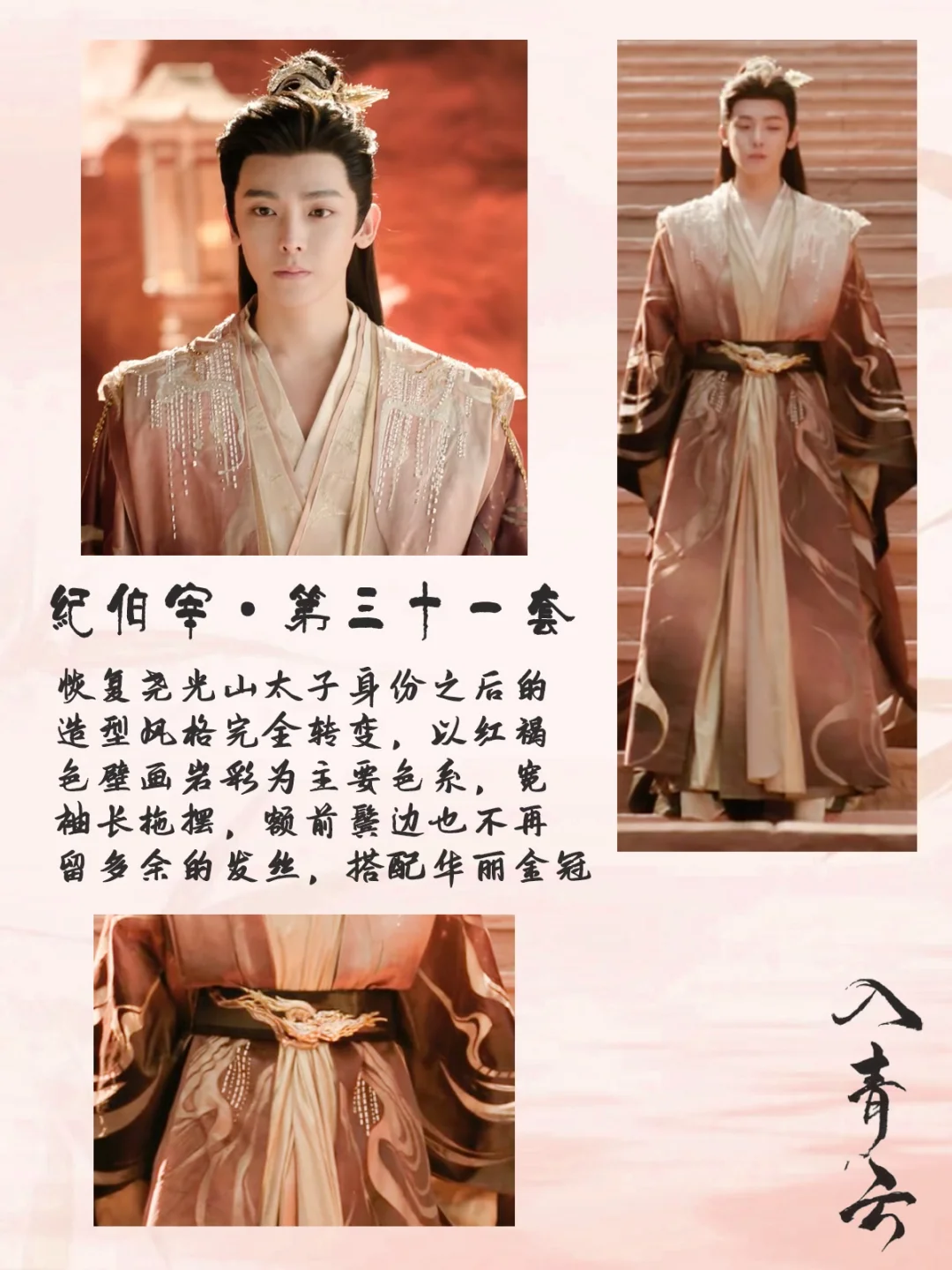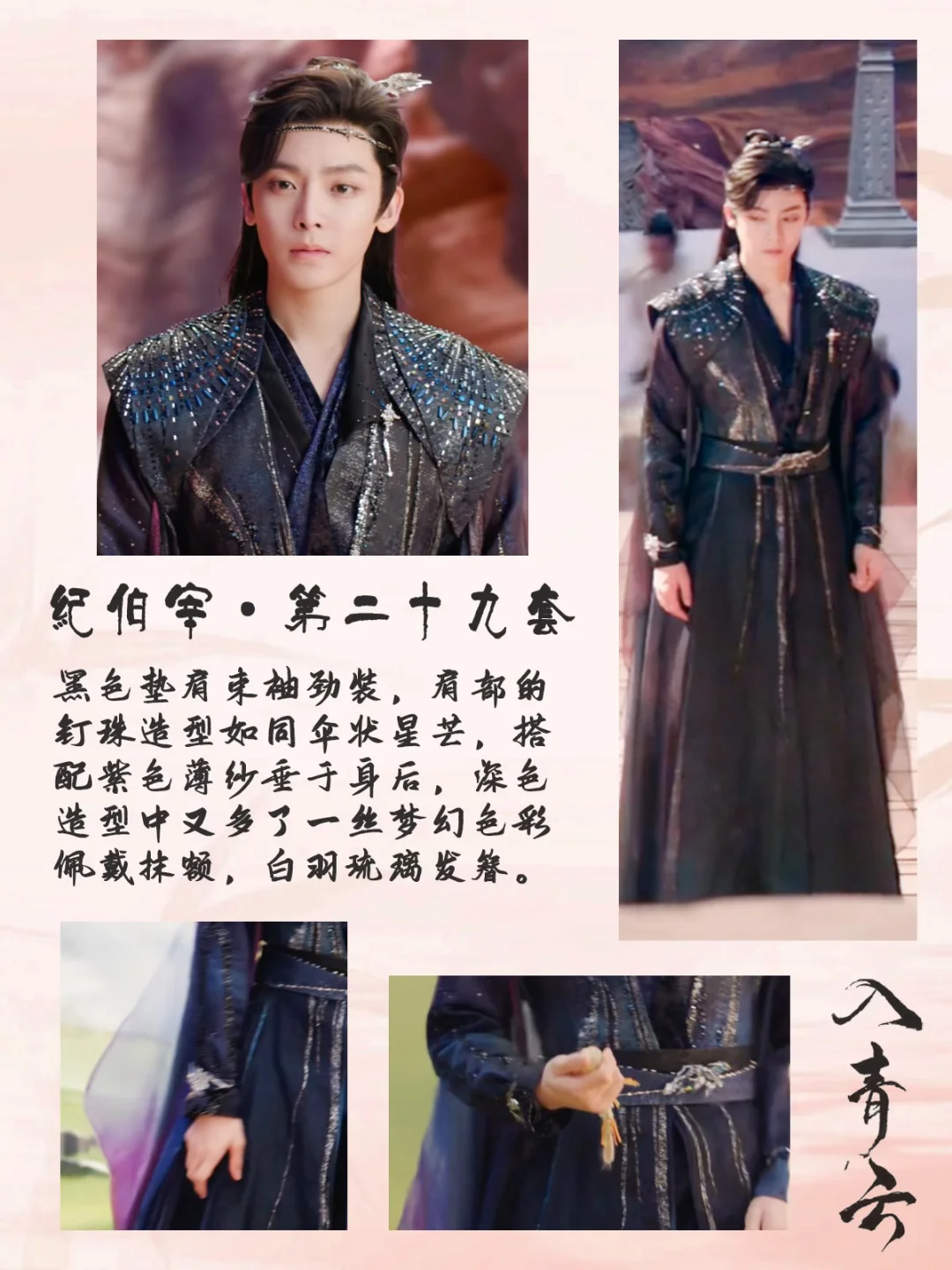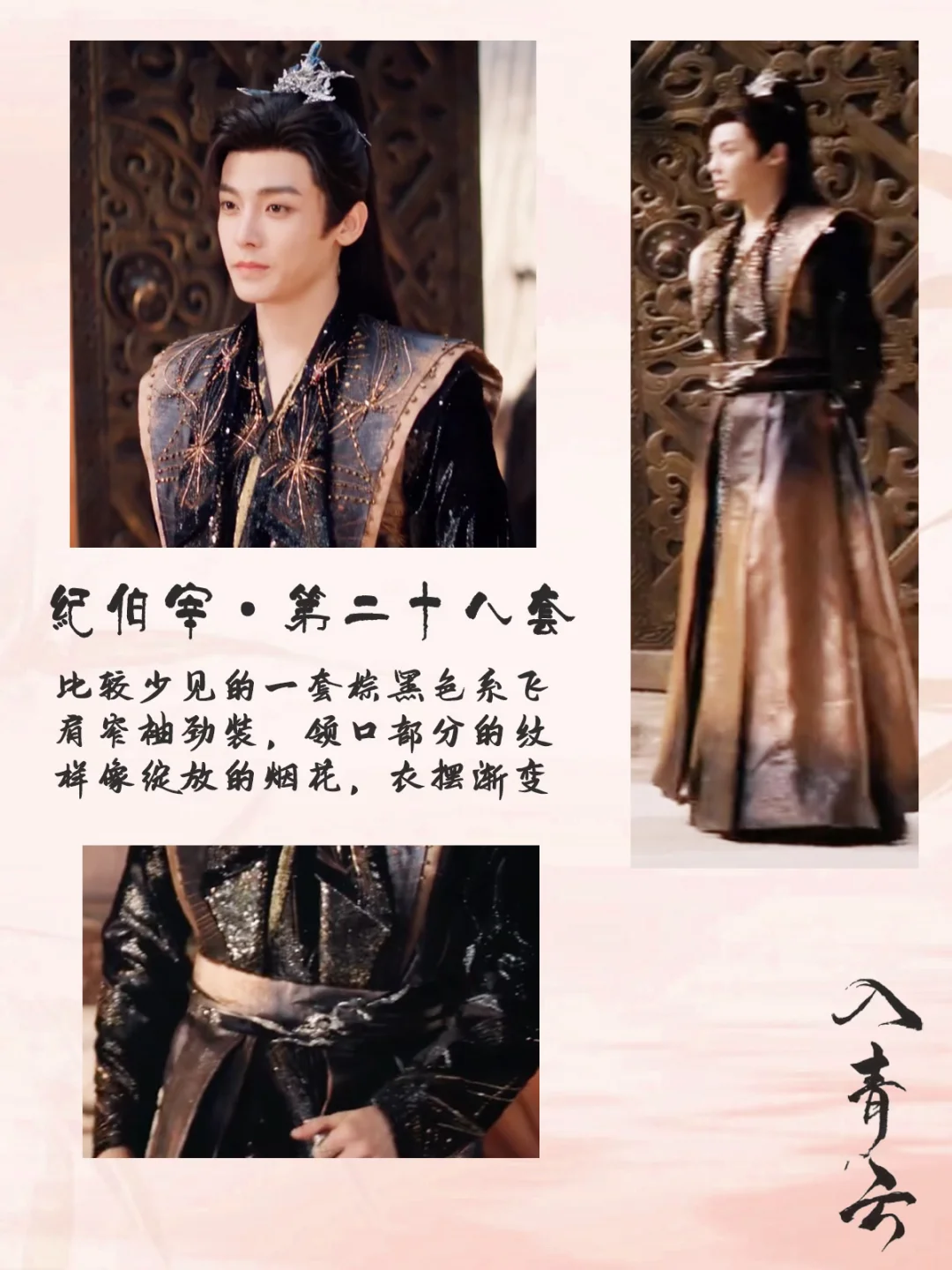 真的不如之前的好看呀!有没有同感的小伙伴[失望R] 我最喜欢第24套那类款式,束袖搭配薄纱披肩、大翻领挂链条,风格更加飒爽霸气! 纪伯宰的衣服也是超级多,总共[四R][零R]套,后期尧光山的主题色都变为美拉德棕色系了