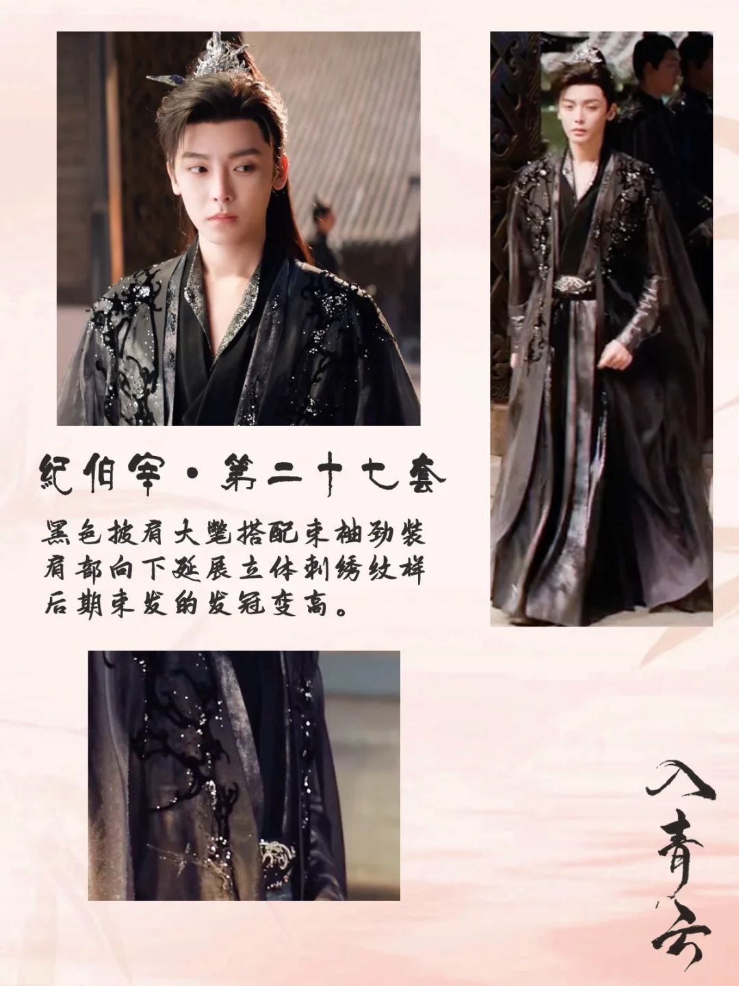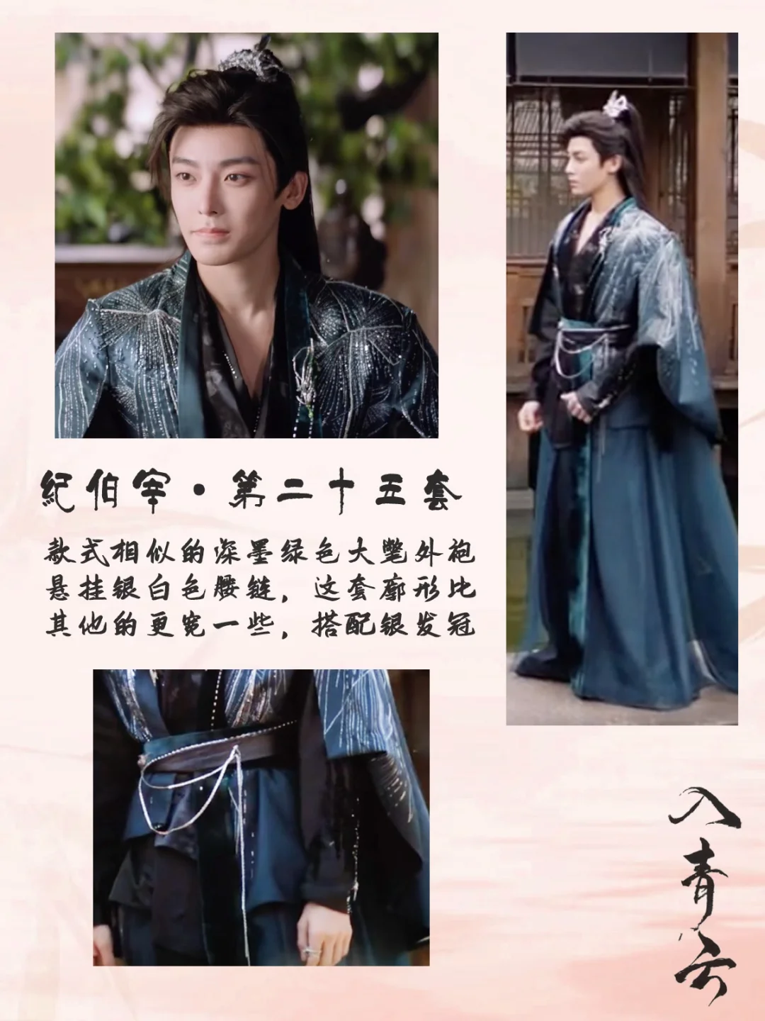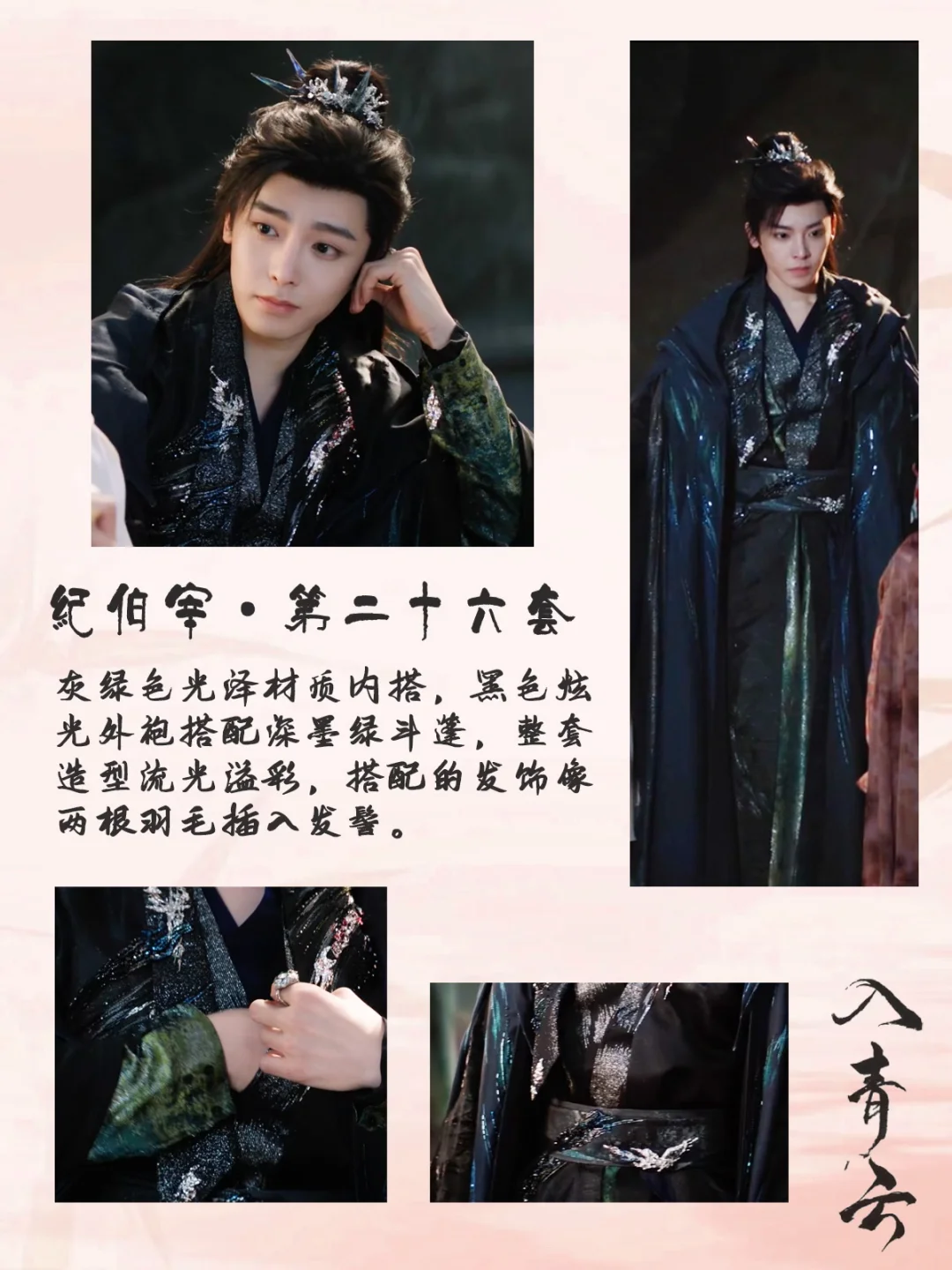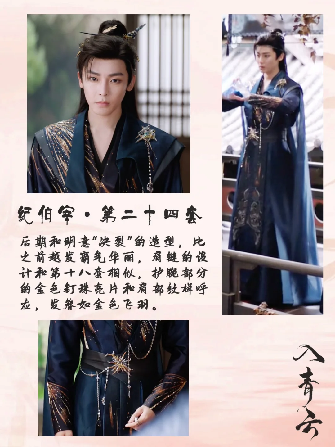 真的不如之前的好看呀!有没有同感的小伙伴[失望R] 我最喜欢第24套那类款式,束袖搭配薄纱披肩、大翻领挂链条,风格更加飒爽霸气! 纪伯宰的衣服也是超级多,总共[四R][零R]套,后期尧光山的主题色都变为美拉德棕色系了