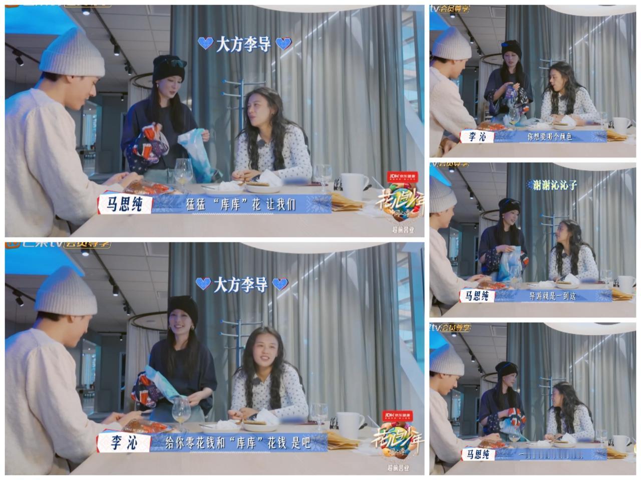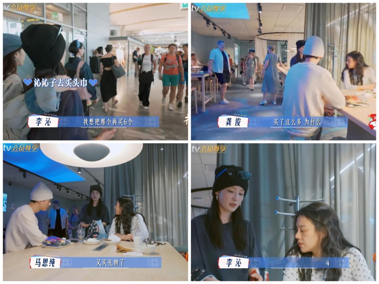 看到李沁频繁这样做, 马思纯都看不下去了, 忍不住 当面吐槽。 李沁在捷克当导游的时候, 就给大家分零花钱买礼物, 又自掏腰包给大家买礼物。 当下到了挪威, 李沁又跑向机场商店, 买了7条头巾给大家, 第一个让马思纯选。 马思纯看到李沁又给自己送礼物了, 忍不住吐槽她当导游就各种买买。 不是给零花钱让别人买, 就是花钱给别人买。 当她的家人好幸福呀。 看来李沁也是口袋没有“余粮”的人, 那么爱买东西。 可以想象李沁一拿到片酬, 大概率会买东西犒劳一下自己, 也会买给家人礼物。 你说, 如果马思纯想跟李沁借钱, 李沁大概率是没有的, 都用在买买上了。 其实李沁也许就像当下的年轻人一样吧, 活在当下, 有经济能力的情况下, 就花钱让自己愉快, 犒劳自己与家人。 因为意外和明天, 不知道哪个会先来。