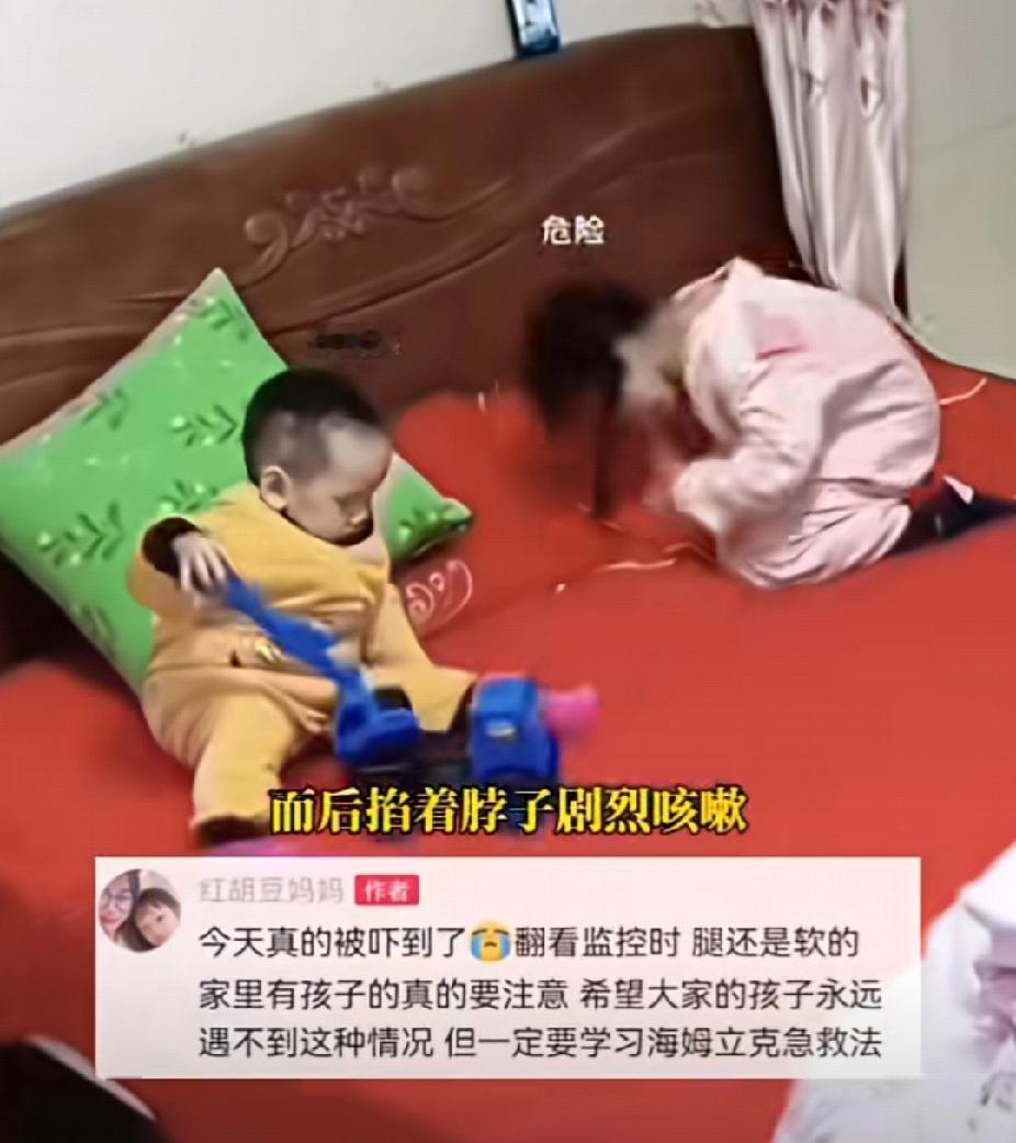 真是个宝藏弟弟啊!11月4日,四川一女孩吃桂圆被卡住,刚会走路的弟弟高智商操作及时救回姐姐! 监控视频显示:当时姐姐在床上认真剥着桂圆,弟弟在一旁认真摆弄着手里的玩具。突然姐姐被桂圆卡住喉咙,瞬间无法呼吸。 弟弟察觉到异样,马上爬到姐姐身边,拍拍姐姐的前胸和后背,试图救姐姐,但他的力气太小了,根本没有任何作用。 于是弟弟连忙下床,踉踉跄跄的走到厨房叫妈妈,妈妈看到女儿的情况吓坏了! 幸好妈妈会海姆立克急救法,她一边从后背抱住女儿开始施救,嘴里一边有节奏的念叨:“剪刀石头布,剪刀石头布。”好像是在和死神玩儿着猜拳游戏,赌注是女儿的命。 幸运的是,在妈妈不懈的努力下,女儿吐出了卡在喉咙里的桂圆。回放监控视频时,妈妈哭了,她不敢想象如果自己没有发现,如果年幼的儿子没有来报信,最终会发生什么。 对此,我想对所有的父母说:“我希望所有的孩子都不会遇到这种情况,但海姆立克急救法一定要学会!” 你会海姆立克急救法吗