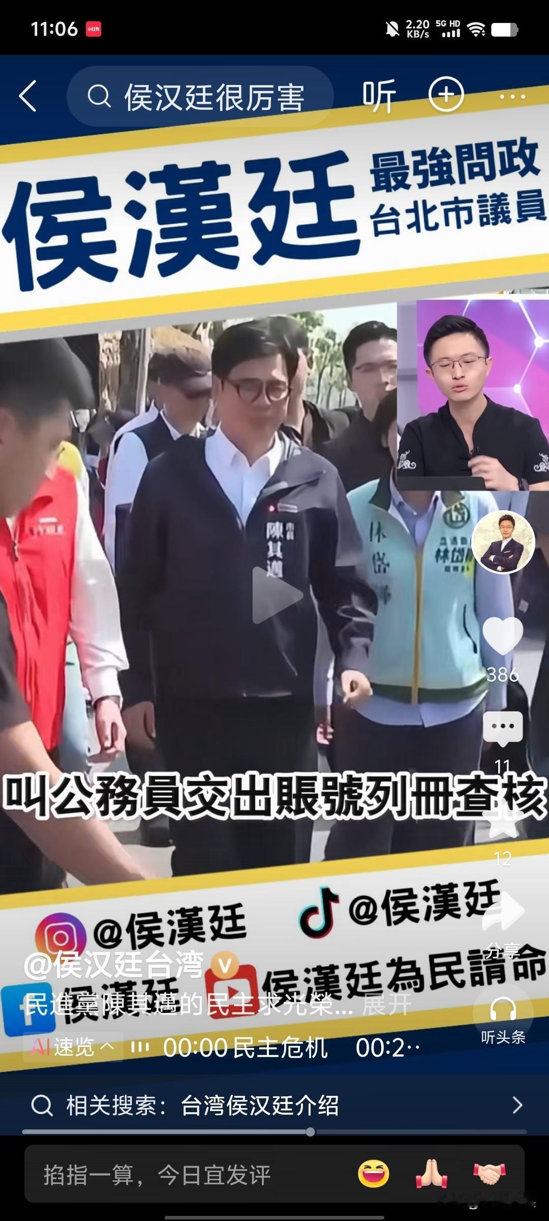 民进党这一回吓破了胆,所谓的“民主政治”的谎言再次被揭穿 台湾名嘴侯汉庭说,高雄有一个很奇妙的现象:白天上班当公务员,晚上回家当网军;这才是高雄最大民主危机。 高雄市不仅柏油会变山,还会公务员脸书变“迈书”,市长陈其迈的“迈”,市府要求区公署的员工交出脸书账号,列册管理;长官还不定时查核,有没有对市政府的贴文按赞、转发、点评和分享。 说白了就是白天上班当公务员,晚上回家当网军,这叫着陈其迈式民主求光荣,简称为“迈(卖)主求荣”。 事情曝光之后,陈其迈又震怒了;高雄政治逻辑就是这样,陈其迈震怒,基层背黑锅,陈其迈染个新发色,网友翻白眼。 从深展逻辑分析: 第一、行政中立被打破;政府公器用来替政党服务。高雄市政府变成了民进党的网军府。 第二、在行政层面上,公务员等于被迫表态。交出脸书帐号列册管理,你不按赞,市长可能不开心。你的绩效考核就危险。这是行政恐怖主义,而非民主政治,这种情况之下,谁还敢建言,谁还敢说真话,谁还敢揭弊。 第三、法律层面问题,脸书本来是用来个人的社交媒体,里面有个人资讯,个人隐私等,政府强制登记造册管理,追踪个人资信记录,直接侵犯了个人隐私权。 最后是寒蝉效应,公务员怕什么?公务员不是怕工作忙,不是怕案子多。是怕没有点赞记录下来,到时候上面追究一下,别人都按赞,你为什么不按赞?是不是你不爱陈其迈?你不爱高雄?你不爱台湾?这种政府政治操弄变成网军化监控场所。 台湾民进党向来标榜台湾民主、自由;尤其台湾民主政治,台湾高雄市是民进党多年执政深绿区,绿油油的一片。陈其迈是民进党绿色执政一面旗帜,多年在高雄为所欲为。把高雄打造成行政专制的恐怖主义温床。公务员成了为民进党服务的“工具人”,可见民进党何其可恶,何其虚伪,是不折不扣“骗子党”。 另外,这种双重身份的捆绑,最终伤害的是谁?是高雄市民。当公务员的精力被政治内耗分散,当公共服务变成了“政治任务”的附属品,民生问题就会被搁置,城市发展就会停滞。 高雄需要的是白天为市民服务,晚上能安心休息的公务员。而不是被双重身份绑架,被政治裹挟的“工具人”。市民期待的公务员是能把所有的精力放在公共事务上。用专心和责任回应市民的期待,而不是在白天黑夜“双重公职”中消耗自己,耽误城市。 注释 高雄市柏油会变山事件: 指的是高雄市小港区大坪顶山坡地保护区出现非法堆置“柏油山”的事件 。