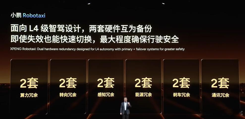 明确了鹏厂面向商业运营的robotaxi车型的推出时间,并且给出了核心的冗余硬件和4图灵的算力配置!