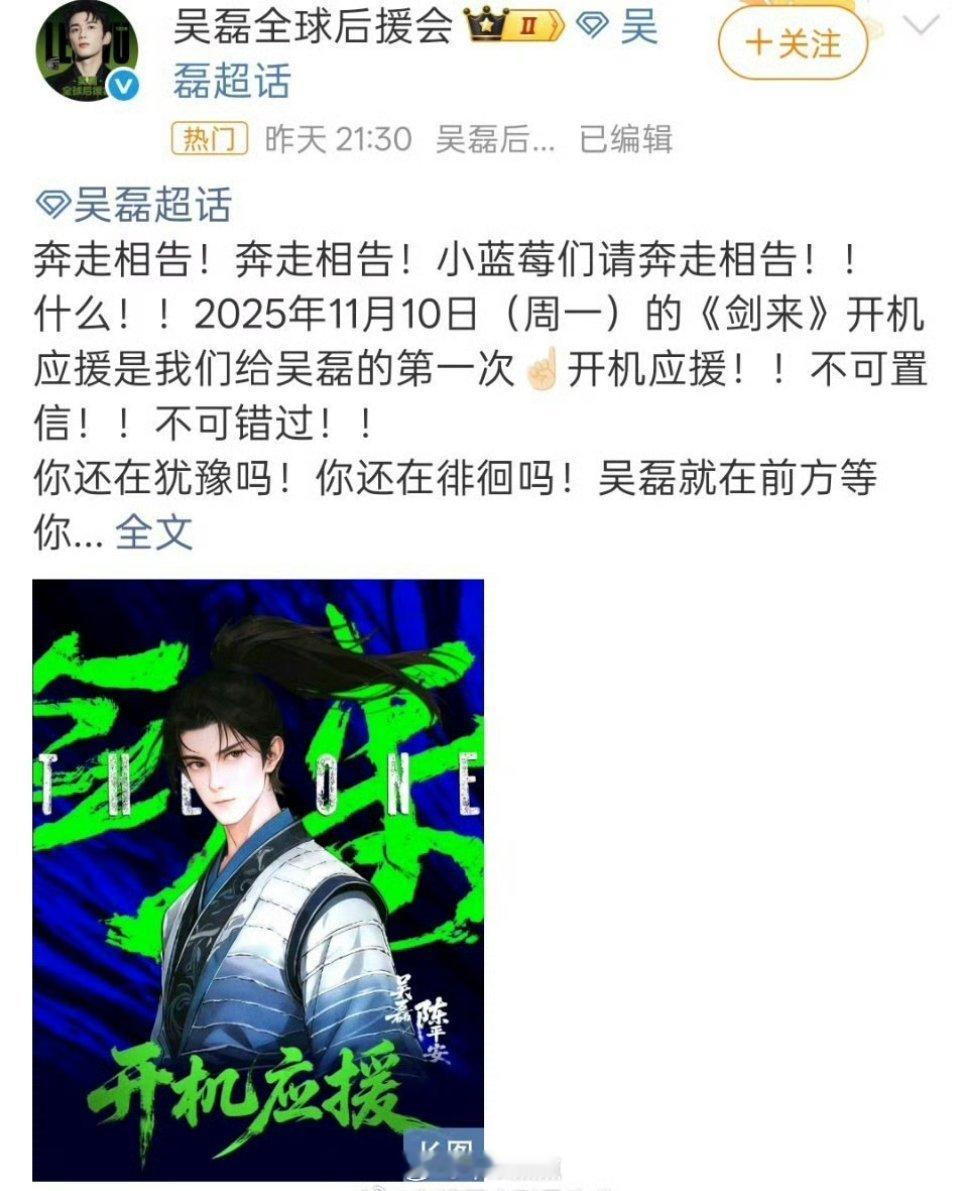 我的天,男频味儿也太足了吧。[期待] 造型好贴动漫啊 吴磊《剑来》第一季笼中雀路透🈶,和陈平安很吻合,11月10日开机仪式
