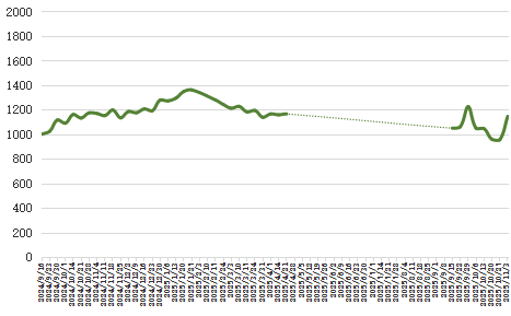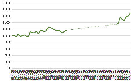 截至2025年11月3日,新华·隰县玉露香梨电商价格指数报1145.44点,较前一期(10月21日至10月27日)上涨189.84点,涨幅19.87%;较基期(2024年9月16日)上涨145.44点,涨幅14.54%。