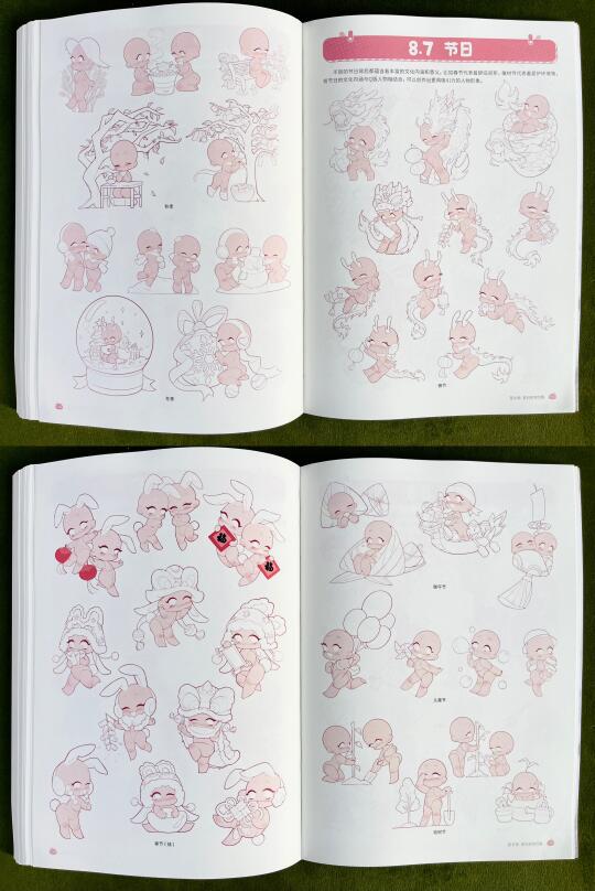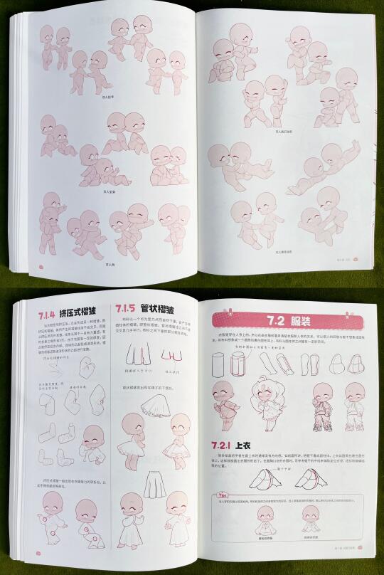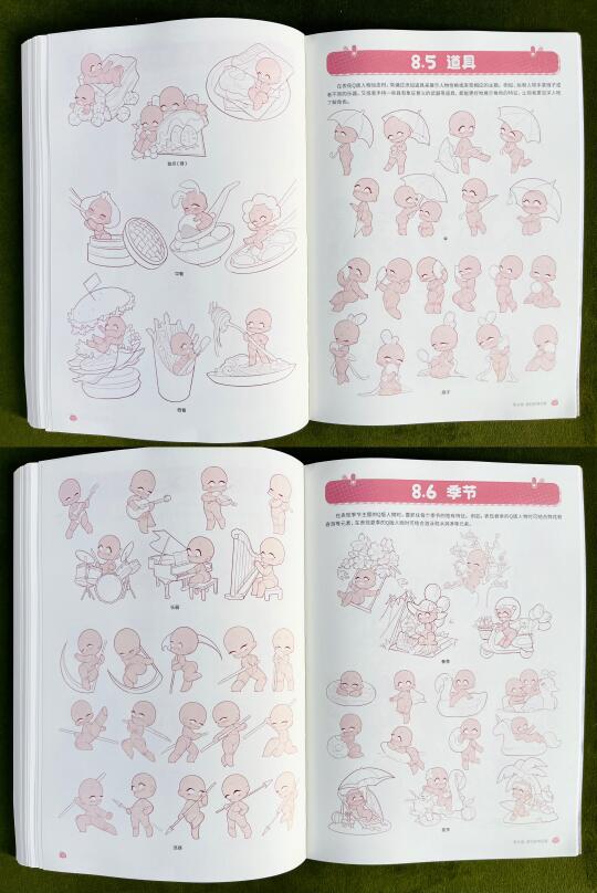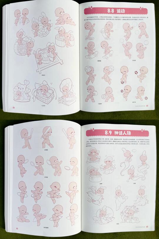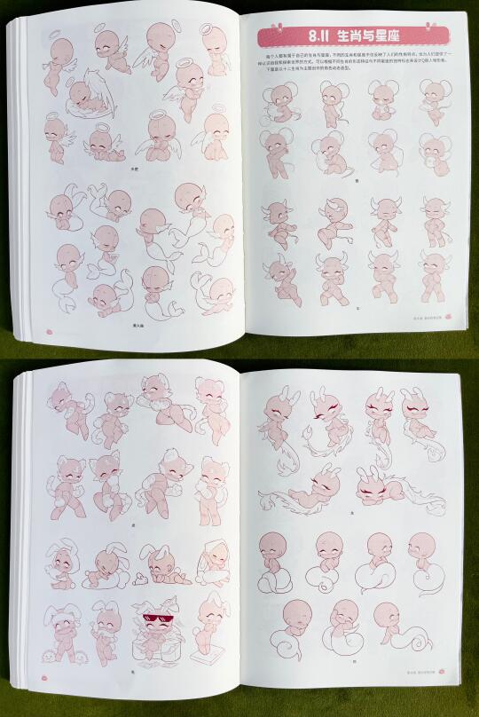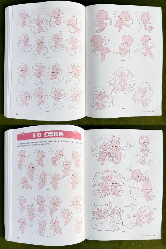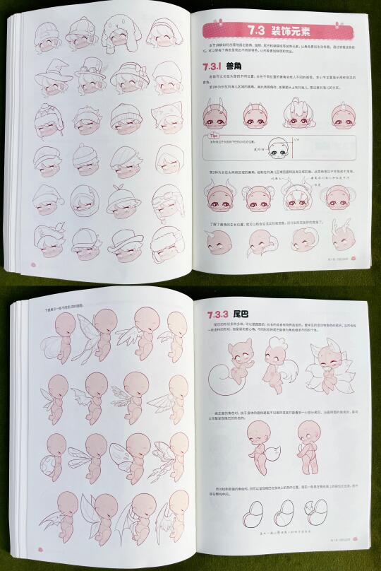📚这本书将人体分解为不同的结构,并从每一个结构的特征出发,详细讲解了Q版角色的头部、发型、躯干、手臂与手部、腿部与脚部、动态、衣褶与装饰的绘制方法(看前2篇)。书中还穿插了一些实用的绘画小窍门,在最后一章提供了丰富的素材模板,可以作为大家学习和创作的灵感库。