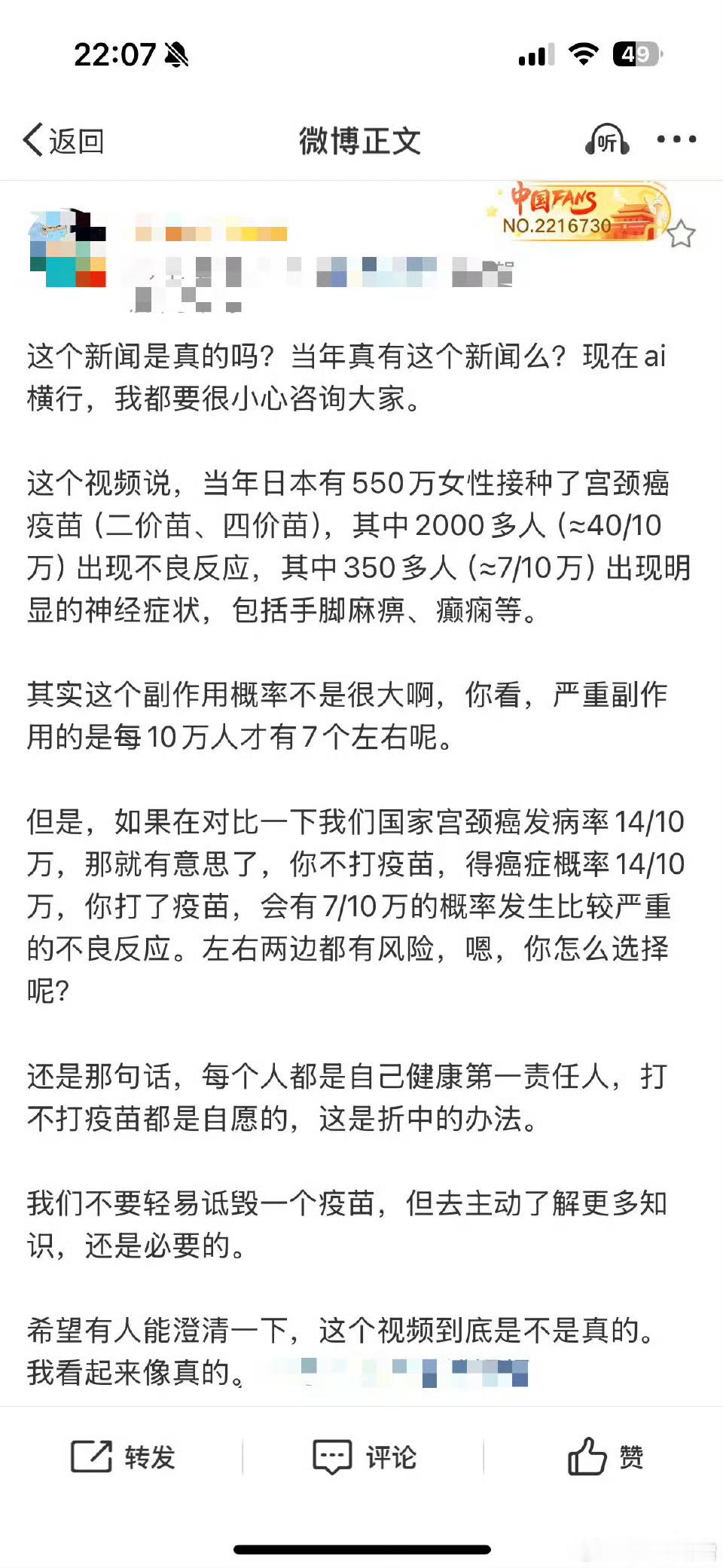 这一说法的传播声浪极大,甚至在我国全面普及新冠疫苗时,也有人引用这套谣言来误导民众,导致不少人对疫苗产生强烈抵触心理。