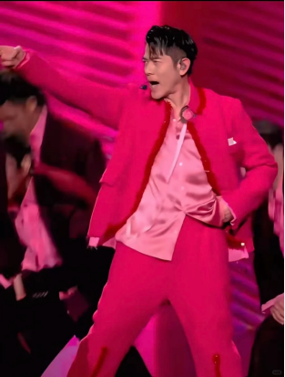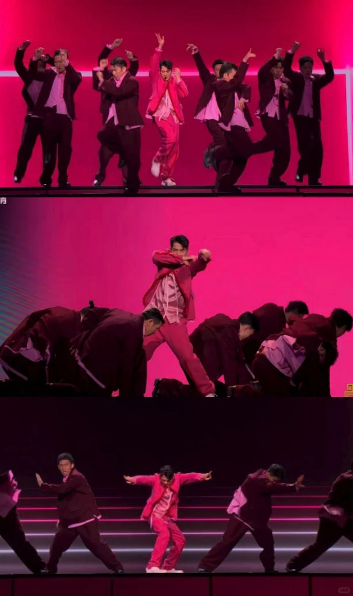 当郭富城穿着一身粉色套装闪亮登场时,谁还能想起这是个已经“年过半百”的人?劲歌热舞,行云流水,每一个动作都精准有力,跳得全场热血沸腾。那一瞬间,无数观众梦回《浪漫樱花》的黄金年代——那个留着三七分发型、穿着喇叭裤的舞王,好像从未老去。