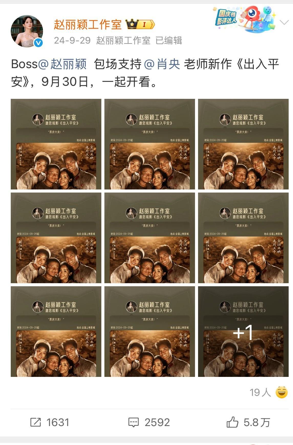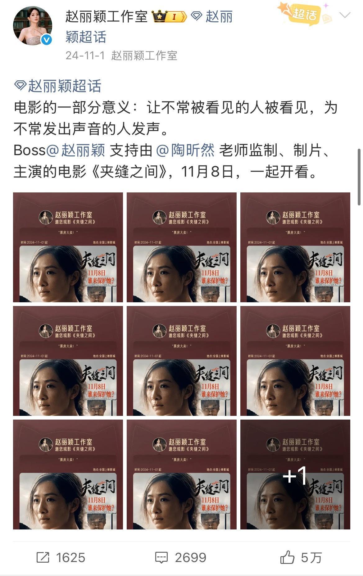 赵丽颖云包场可不分三六九等,支持朋友都是十场起[手指比心]