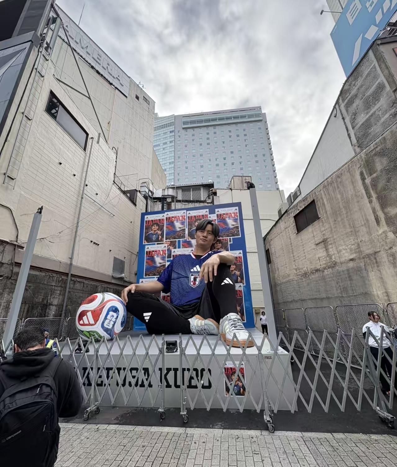 超大手办!东京涩谷区出现久保建英雕像,身穿世界杯球衣