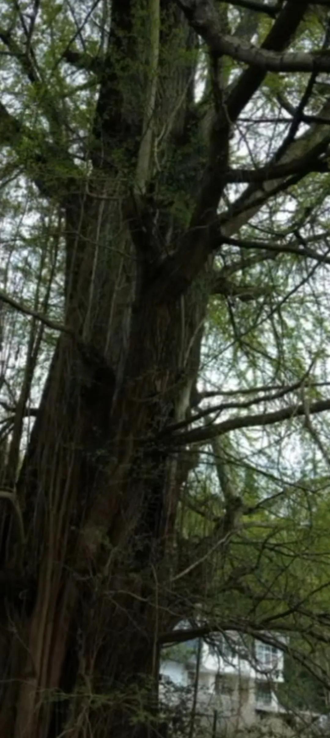 下面这几张图片,是我家乡的一棵神奇古树。 在我家后面的一座小石山上,有一棵树龄为五百年的古银杏树。 现在已经被定为县级古树名木保护序列中,古树介绍牌中定为500年树龄。 500年树龄,推算起来此树生长于明世宗嘉靖时期,经历了明、清、中华民国,现在又进入中华人民共和国时期了,四个朝代哟。 在我们那有一种传说,每当这棵古银树断掉一棵枝丫,我们附近就要去逝一位重要的人物,而且断的哪一方,去逝的人就住在那一方。 这棵树周长要十一二个大人牵手才能围一圈,在多年前,被村里的一个人,在放牛时烧火不小心把这棵树烧着了,树心全部烧完了,只留下一个空壳。 但它依然生长茂盛,只是主要枝丫断了不少,树冠有些不完美了。 在这个被烧坏的树洞里,可以放下一张小方桌,几个人围坐在里面打牌都没问题。 现在这棵古银杏已经修建了专门的保护平台,以方便人们来观赏。 在我们镇上,原来还有一棵比这棵树小不了多少的古杉树。 那一年镇里要修桥,那时候是用木板装模搭架,就准备砍这棵古杉树。 但是没人敢砍,因为民间都有一种传说,砍了古树,就有可能招来不好的灾难。 有一个多年的老石匠,专门修一些大型桥梁的师傅,他不信邪,可能又是在利益的诱惑下,再说又有镇政府作后盾,他就包下了这一项砍树工程。 不知是巧合呢,还是真的有报应,在他砍掉这棵古杉后,不到一年,他就出车祸死了。