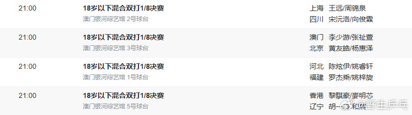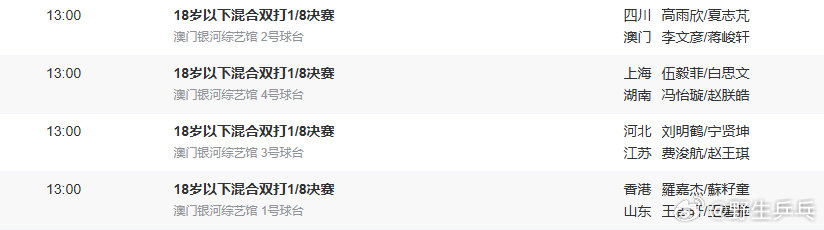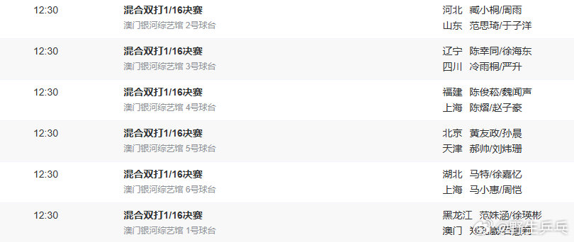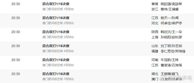 全运会乒乓球首日赛程 乒乓球项目将于明日拉开大幕,成年组混双比赛1/16率先进行
