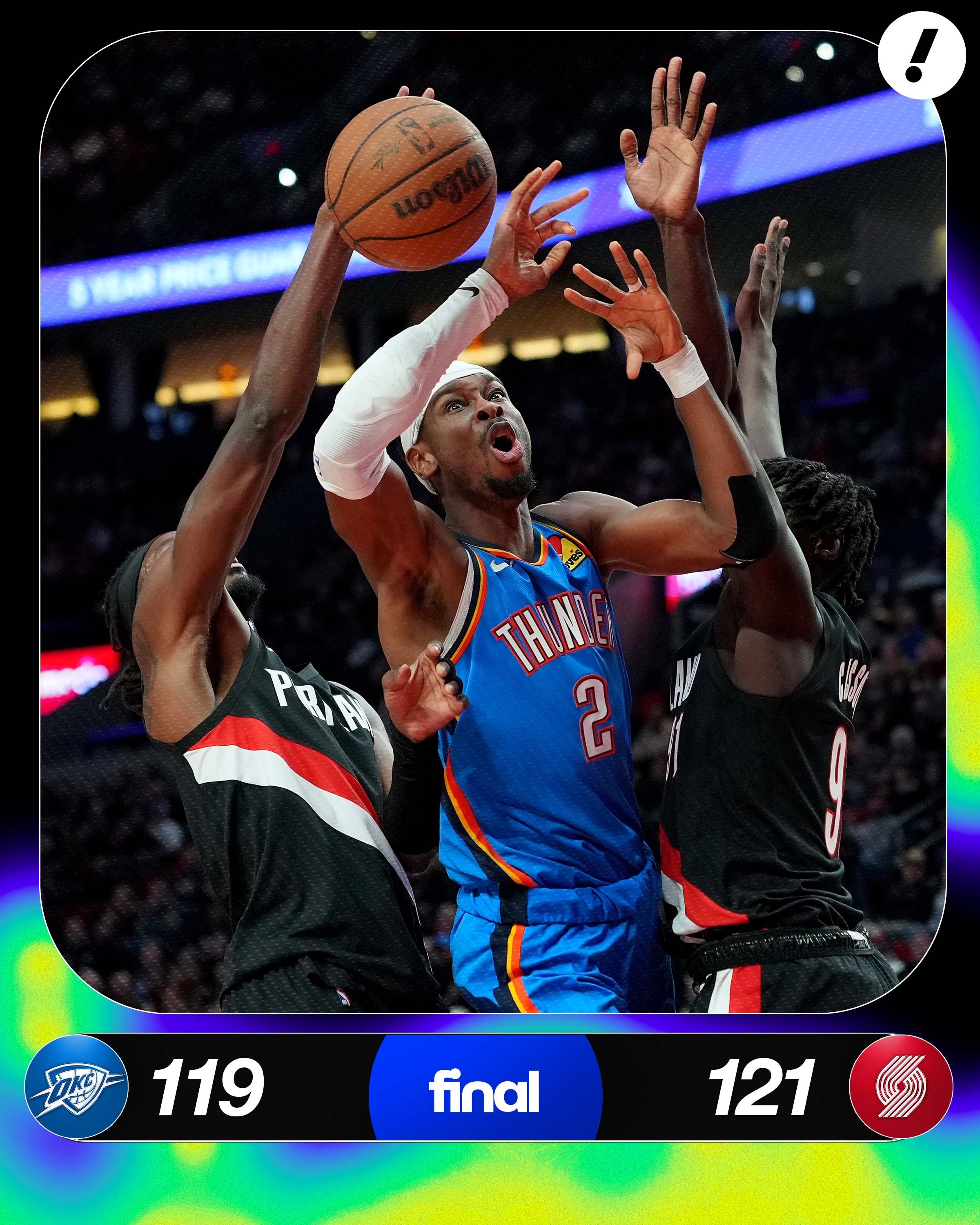 SGA空砍35+9+4,维金斯手感爆棚之夜也没能拯救球队。今天,联盟不败和不胜球队都破了“金身”。