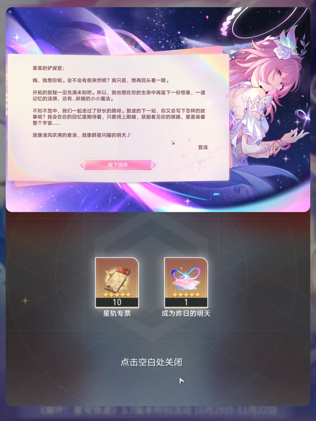 穹宝们,速速上线了 上线即可领取10抽 会弹出动画,直接就有10抽可以拿 不用任何操作