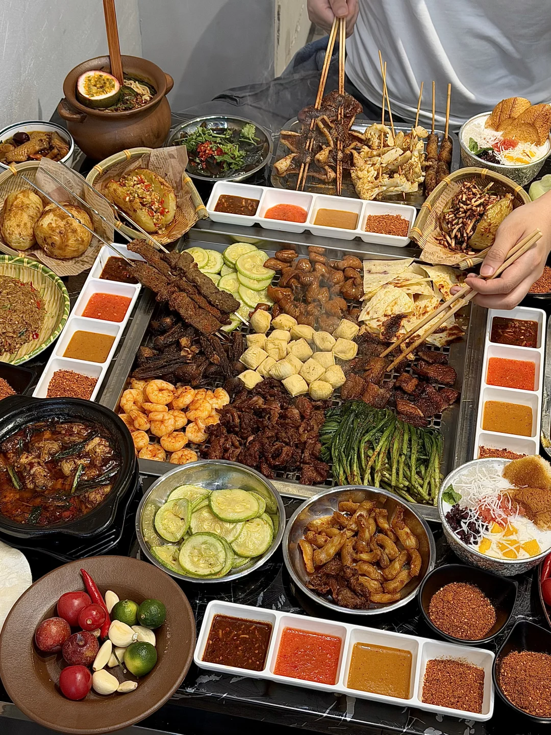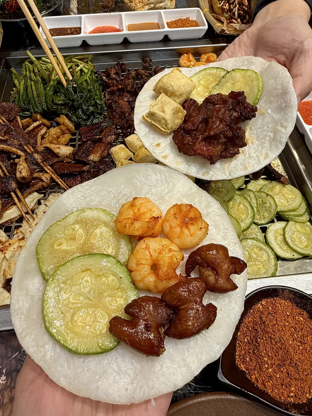 不好吃可以顺着网线来打我…… - ✔云南烧烤 不用去云南!杭州也能吃到云南烧烤啦!烧烤基本盲点不踩雷🍢闻着就一整个香晕了!! ✔️油呛猪脑 还是第一次吃油呛!猪脑滋滋冒油这谁吃了不迷糊🤤!! ✔罐罐米线 米线滑溜溜搭配杂酱🍜嗦得停不下来啊啊啊!!! ✔️脆皮烤洋芋 洋芋外酥里糯🥔裹上折耳根口感层次贼丰富~嘎嘎上头!! ✔️云南玫瑰米布 闻起来就是一股淡淡的玫瑰花香~奶呼呼🥛像是在吃宝宝辅食!!