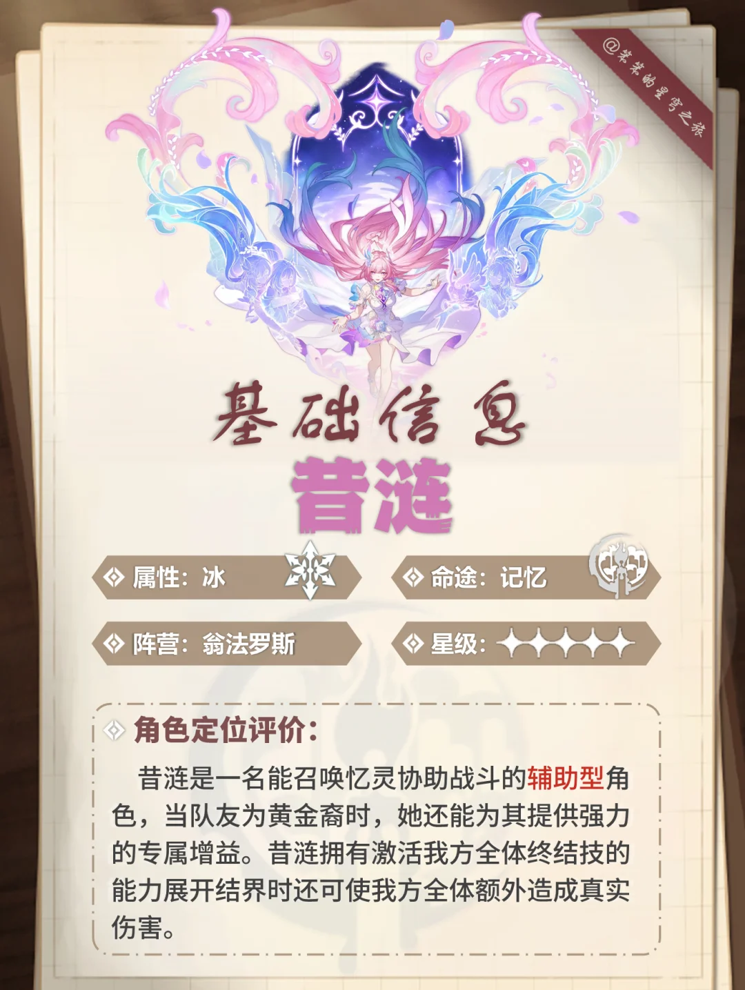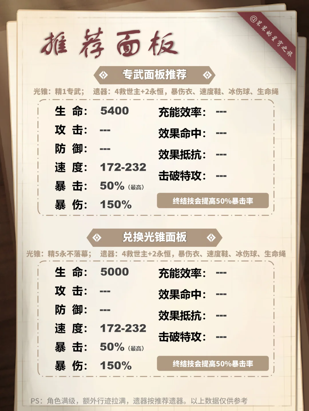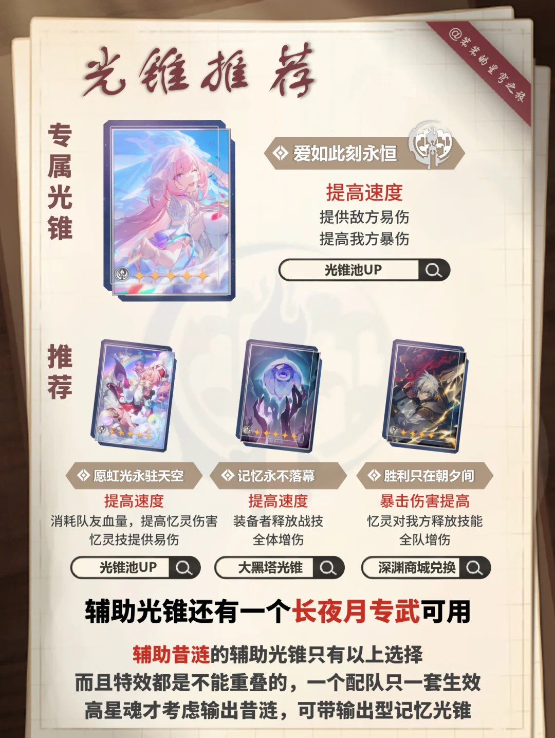 🐱大家好,我是笨笨的铲屎官 昔涟的培养攻略来了 ▶专武优先 不然记忆光锥能选的太少了 平民就只能用两把兑换光锥 都是抢着用的 ▶遗器外圈救世主 内圈全新套装,3.7上线了再刷 主词条暴伤衣、速度鞋 冰/生命球、生命绳 ▶额外天赋+50%的暴击 暴击衣就没必要了 速度180的阈值,压力有点大啊 充能绳没用,昔涟是特殊大招 球哪个副词条好选哪个 ▶配队: 首选当然遐蝶记忆战舰 白厄的话,00昔涟启动有点慢 推荐2+1昔涟配白厄