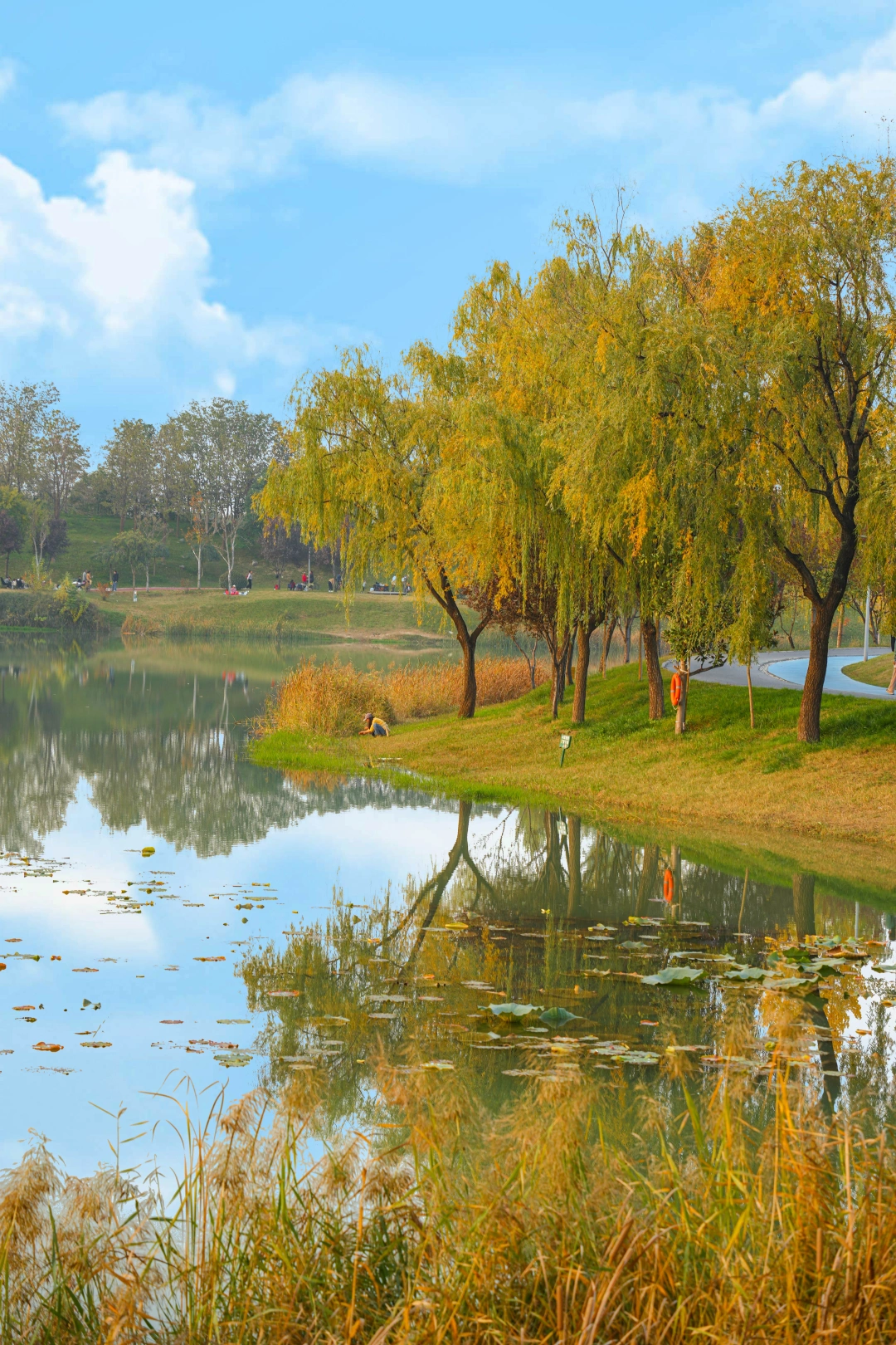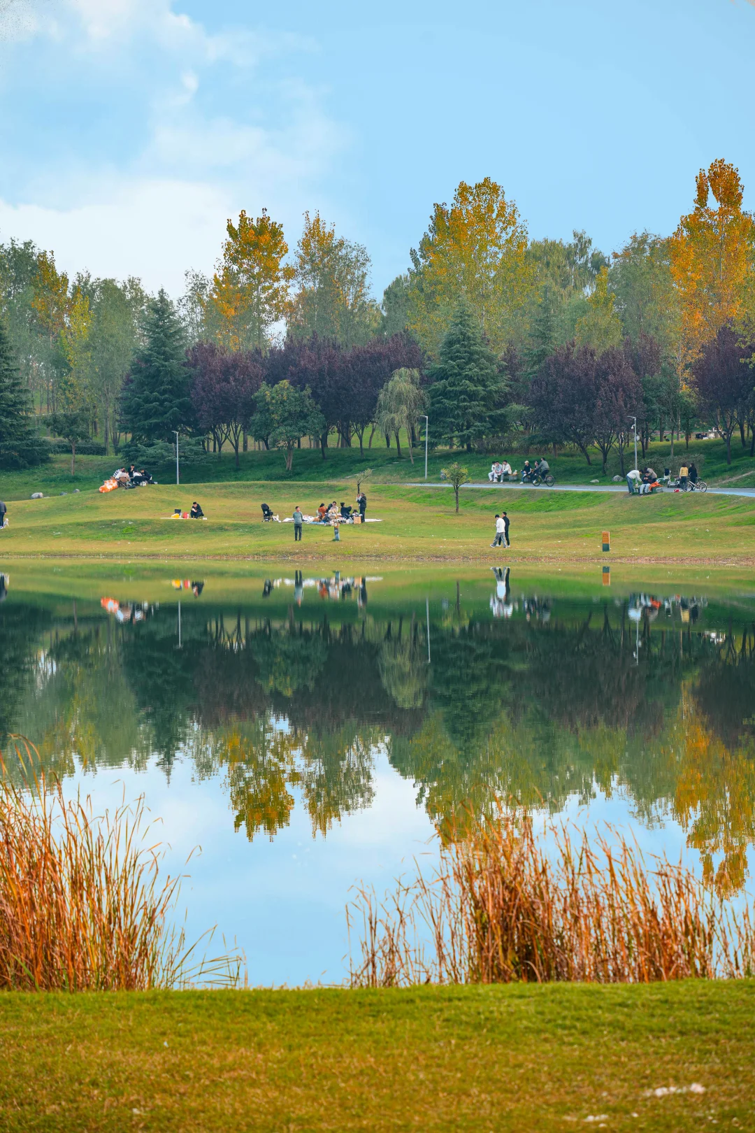 别问了!!真的在西安!! 秋日氛围感拉满 就是那种电影场景的画面!! 一定要晴天去,大概下午三点左右!! 河里的倒影也很美 - 📍地址:梁家滩湿地公园 晒晒秋日里的太阳,舒服又慵懒!! 可以在沿河的椅子上坐一下午!!